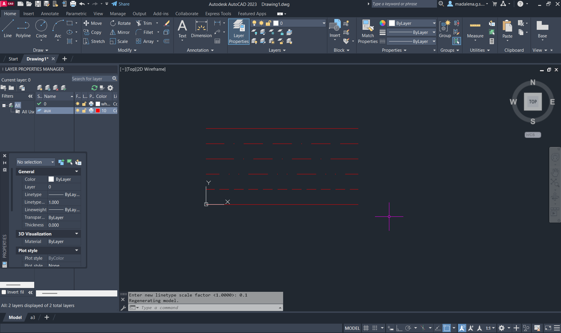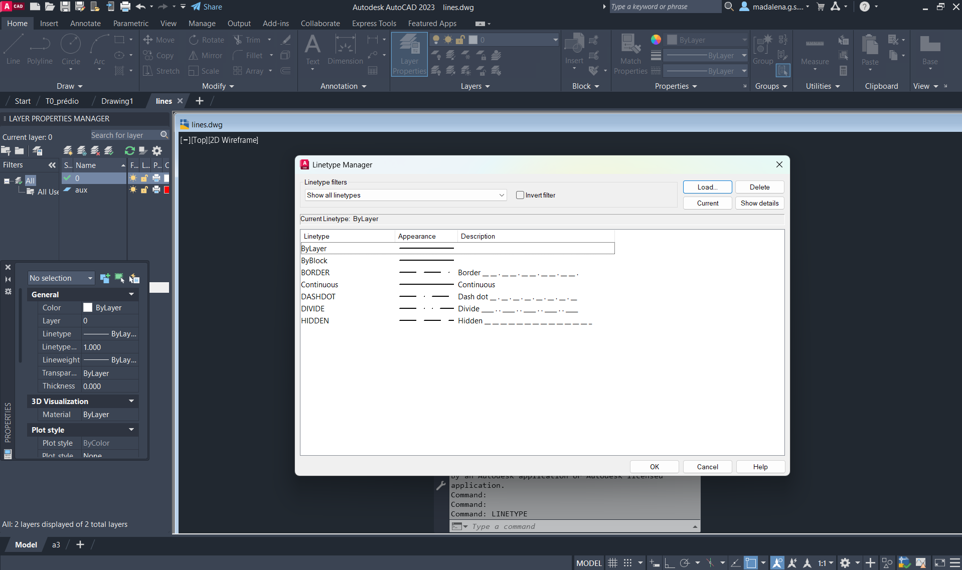 Experiência dos tipos de linha escolhidos, nas linhas existentes, com ajuda dos comandos: PROPERTIES, COPY e LTSSCALE