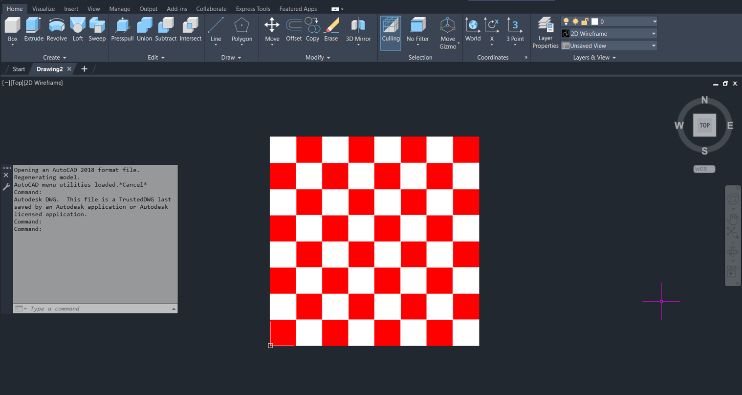 Anotação do processo de representação de um xadrez no AutoCAD, num ficheiro diferente.