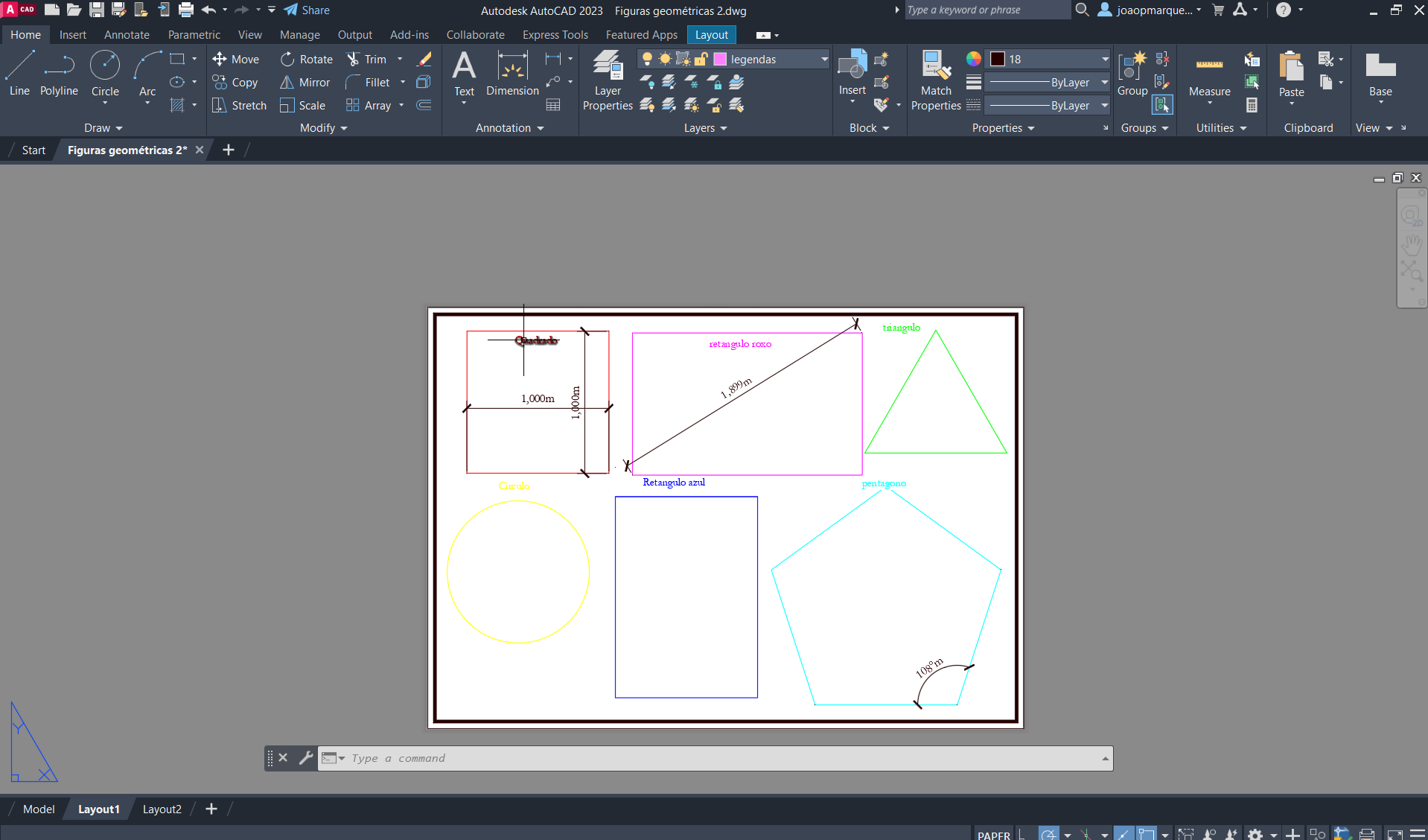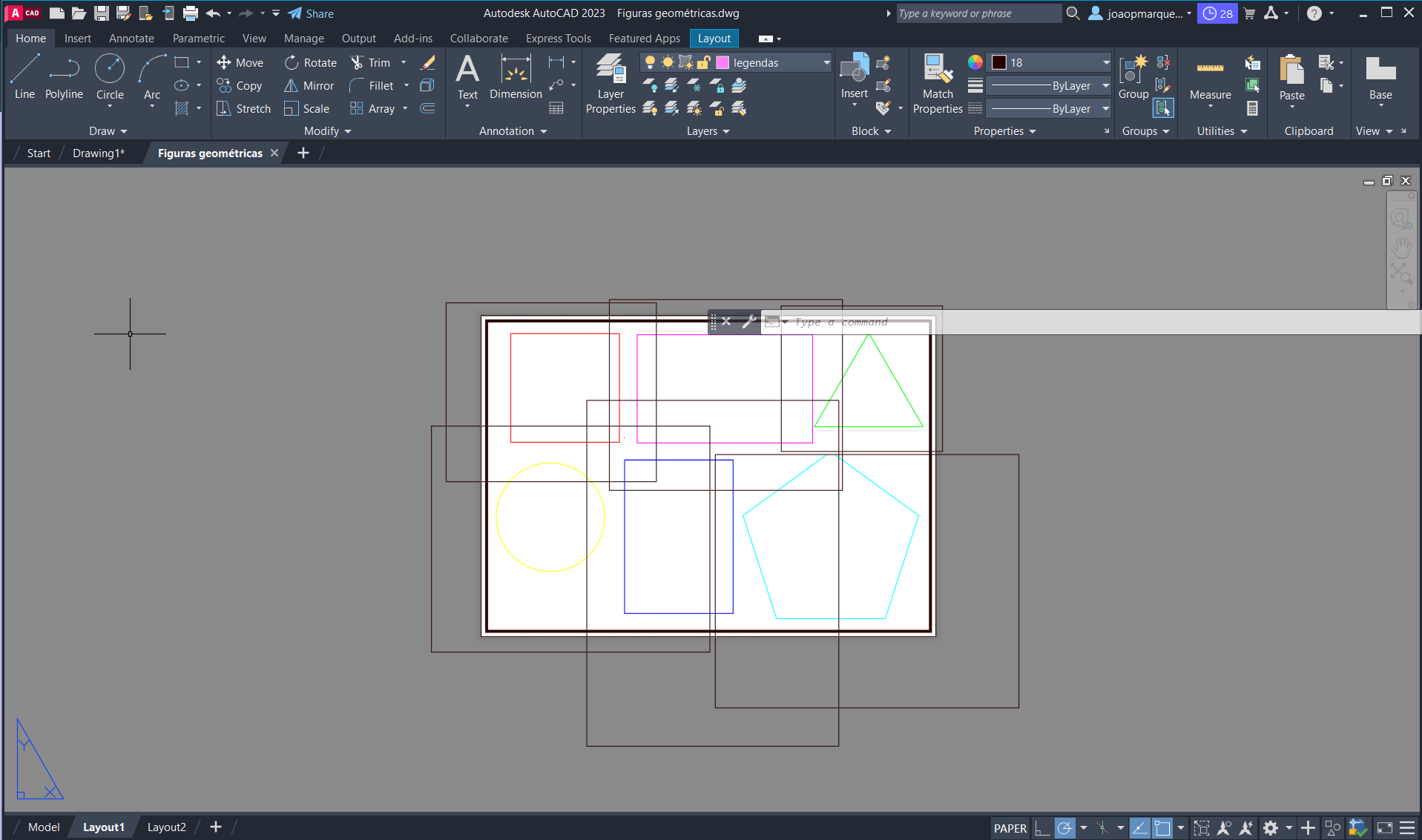 Colocação dos polígonos no quadro feito na aula passada, organização das janelas e escalas destes (1/10pnx)