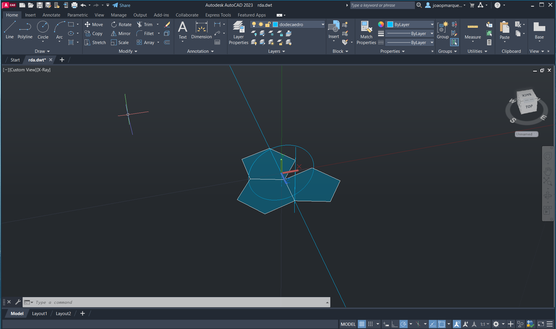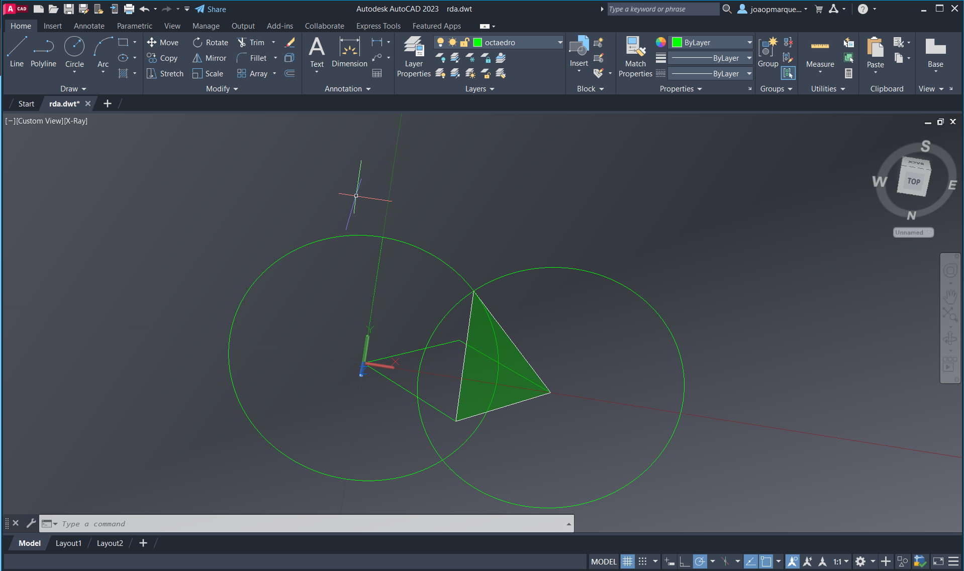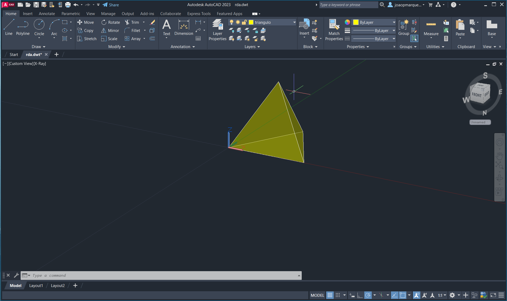 - o tetaedro planeando com os comandos POLYGON, REGION, MIRROR, UCS, LINE, CIRCLE e 3DPOLY.