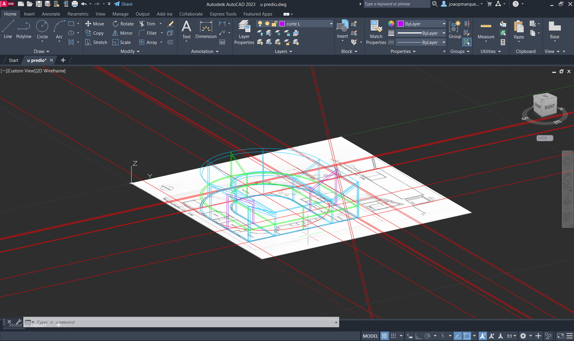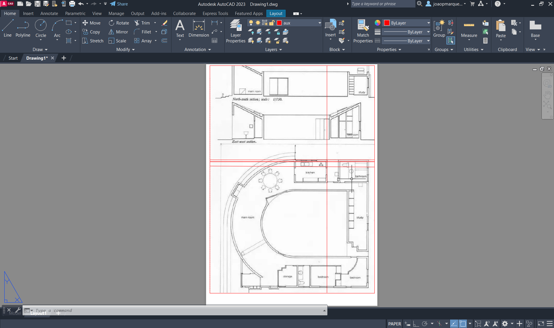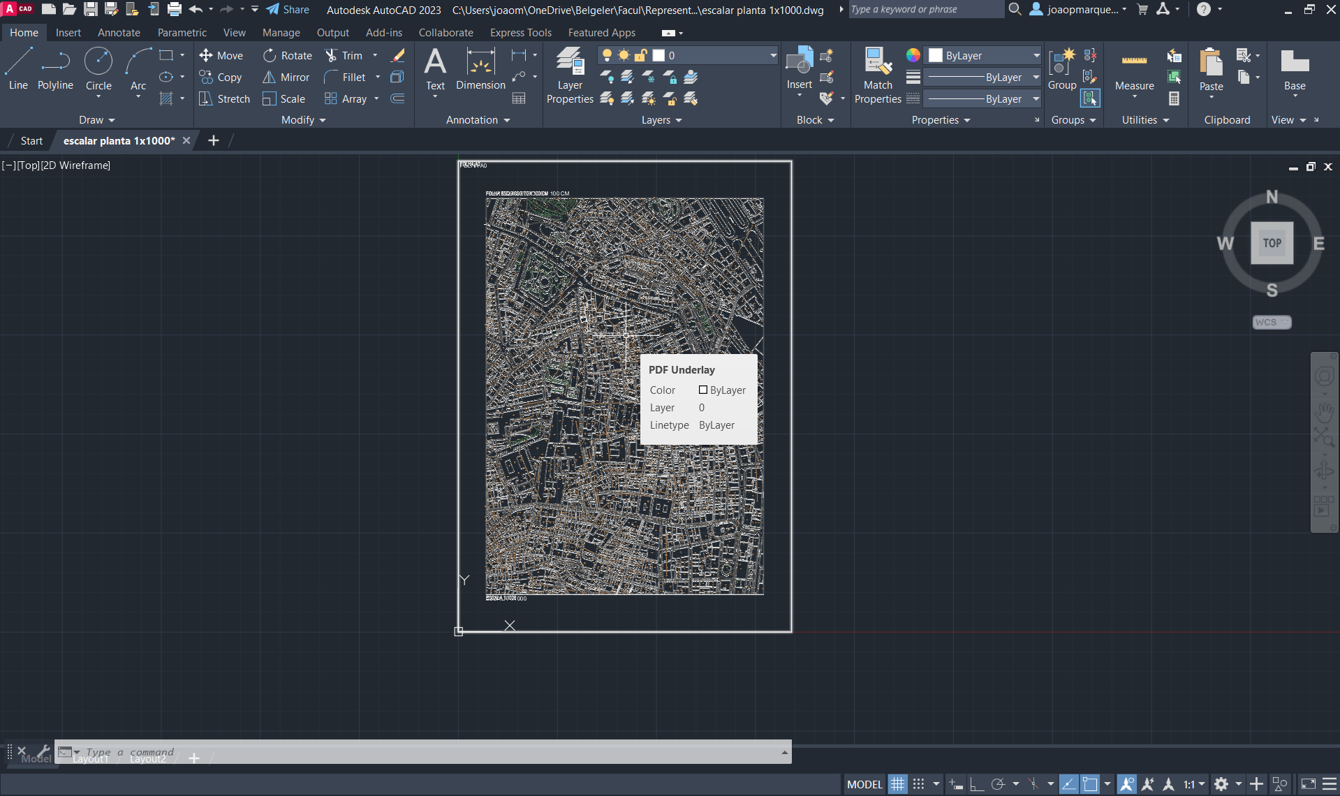Início de um novo exercício de importação e manuseamento de uma planta, relacionada com a disciplina de Projeto, num novo ficheiro AutoCAD.