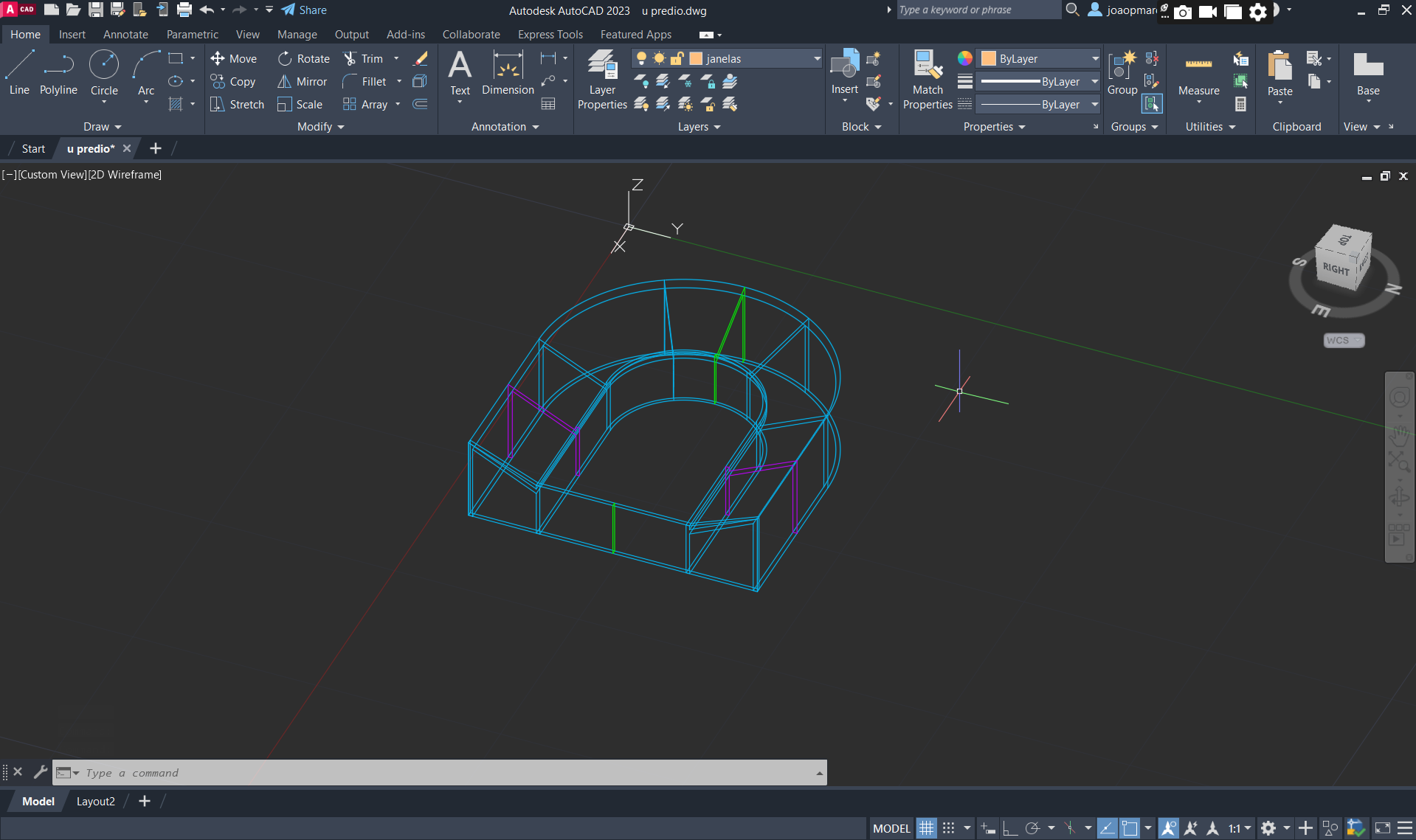 Início de um novo exercício de recriação de uma projeto do arquiteto Toyo Ito, denominada U HOUSE, num novo ficheiro AutoCAD.
