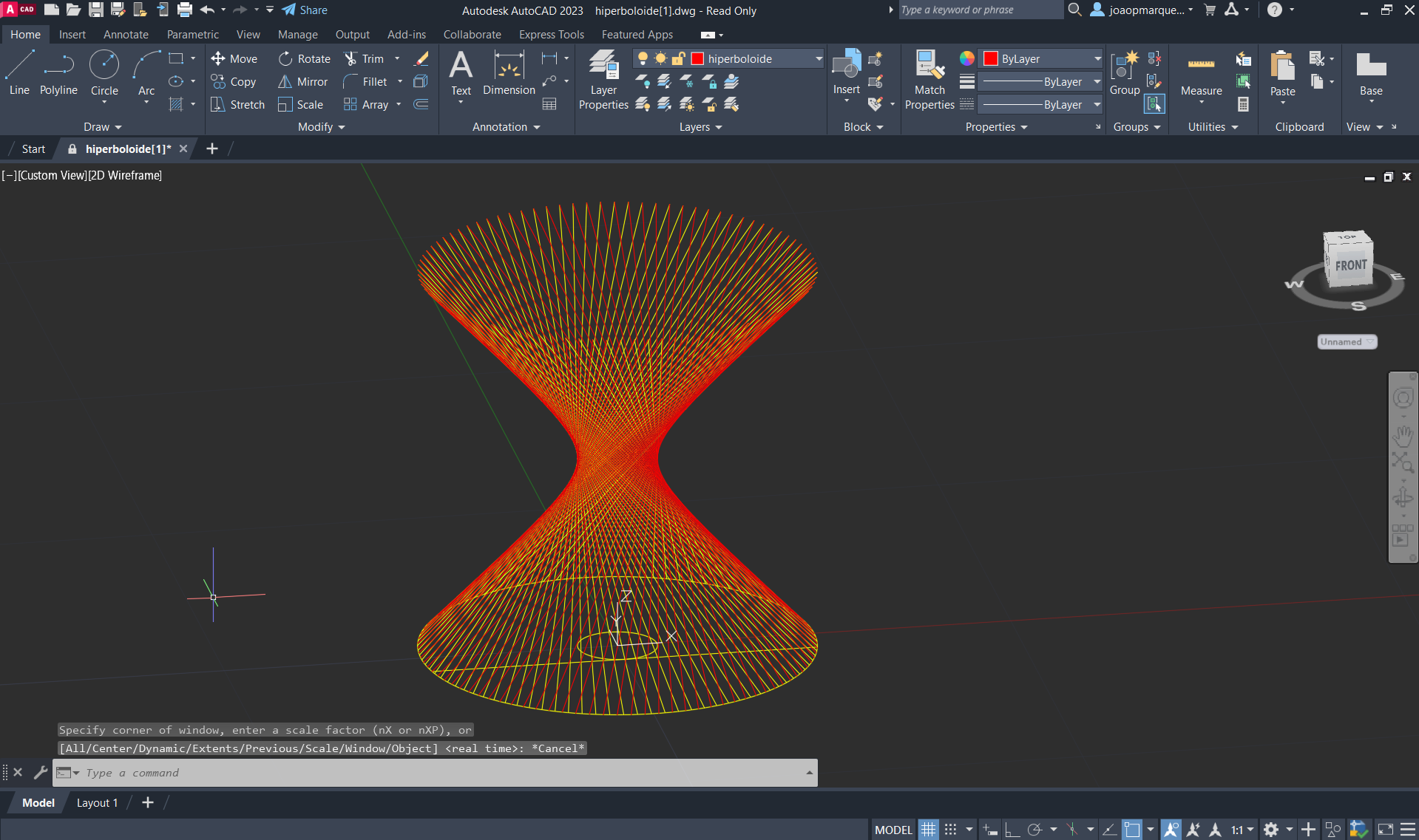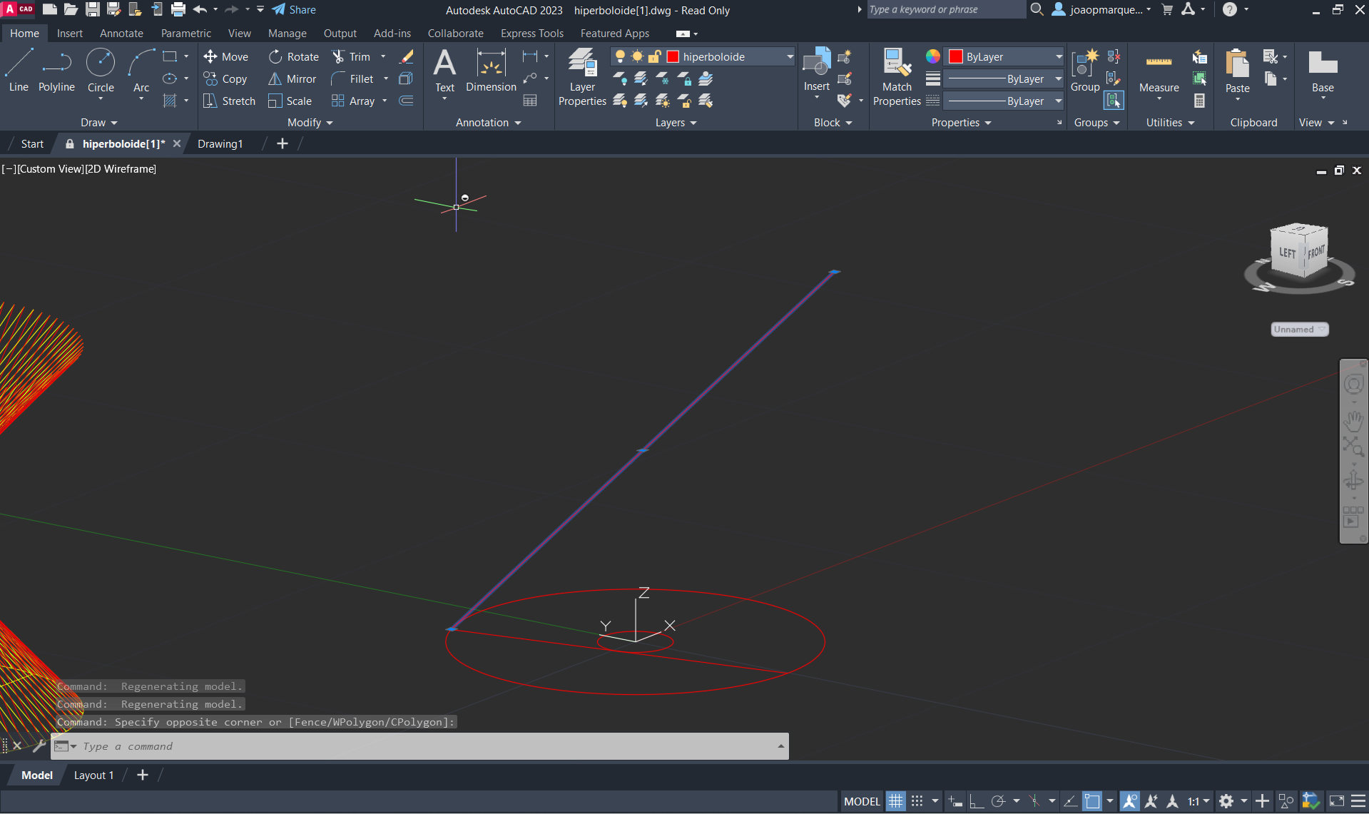 Início de um novo exercício de criação de um hiperboloide, num novo ficheiro AutoCAD.