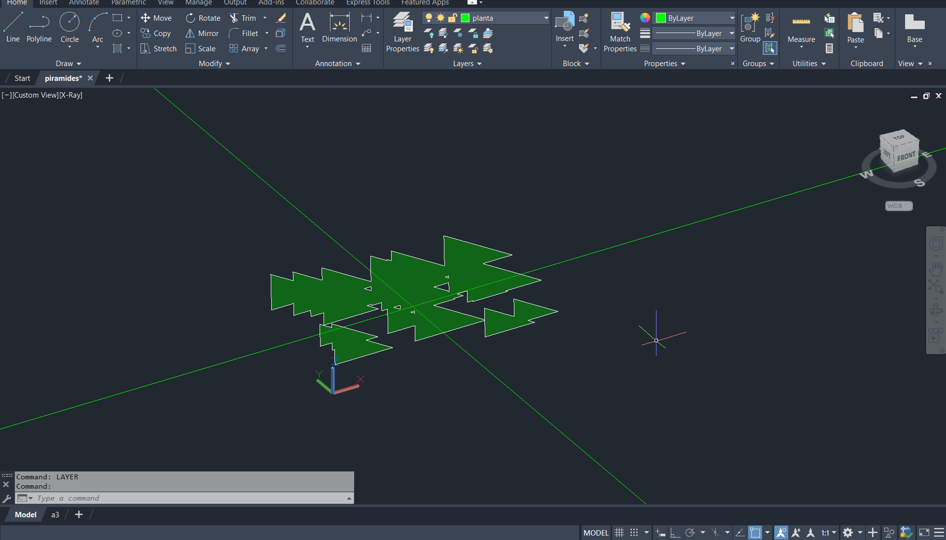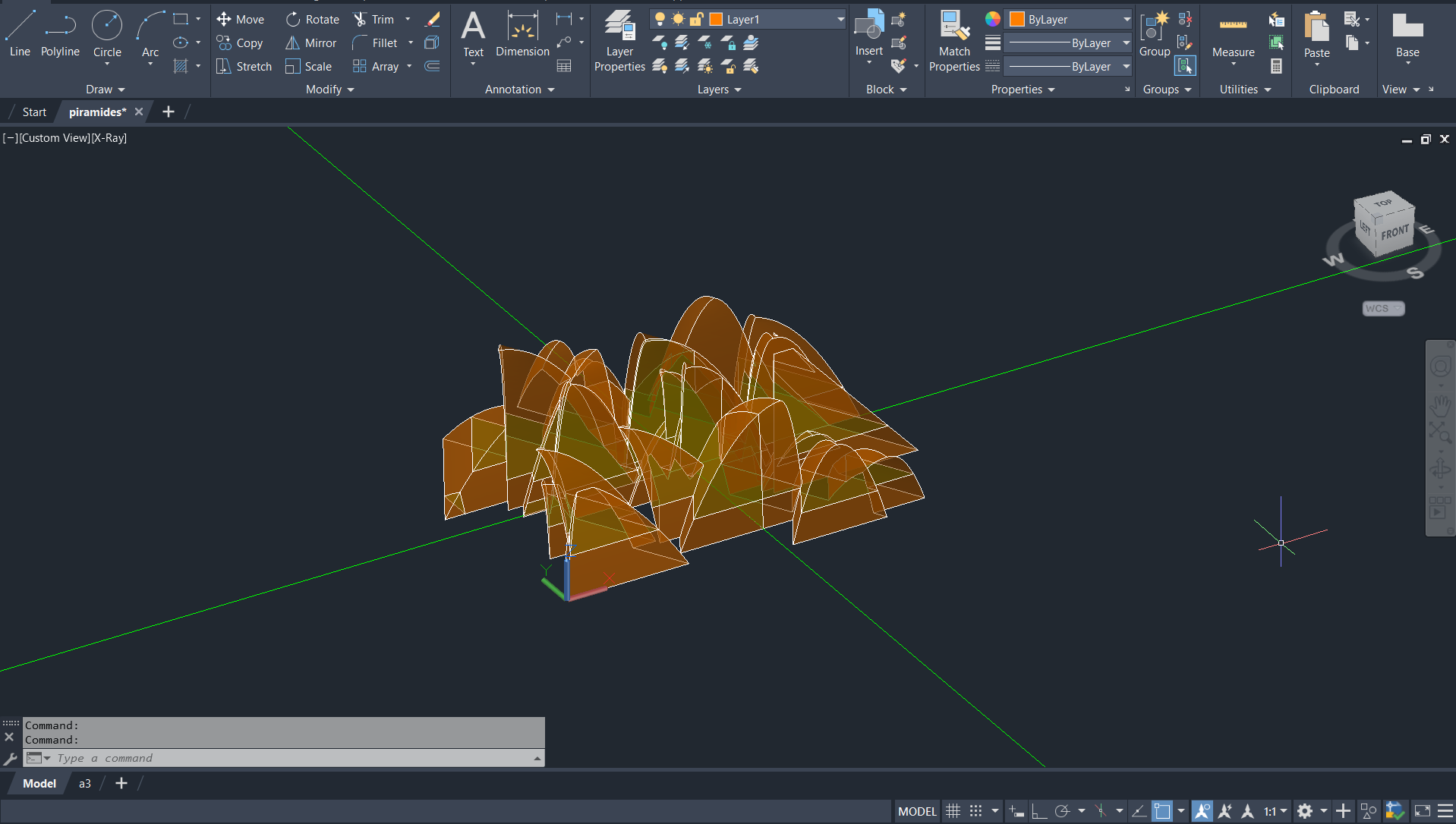 Criação de três cortes (um horizontal e dois verticais), através dos comandos SECTION e XLINE.