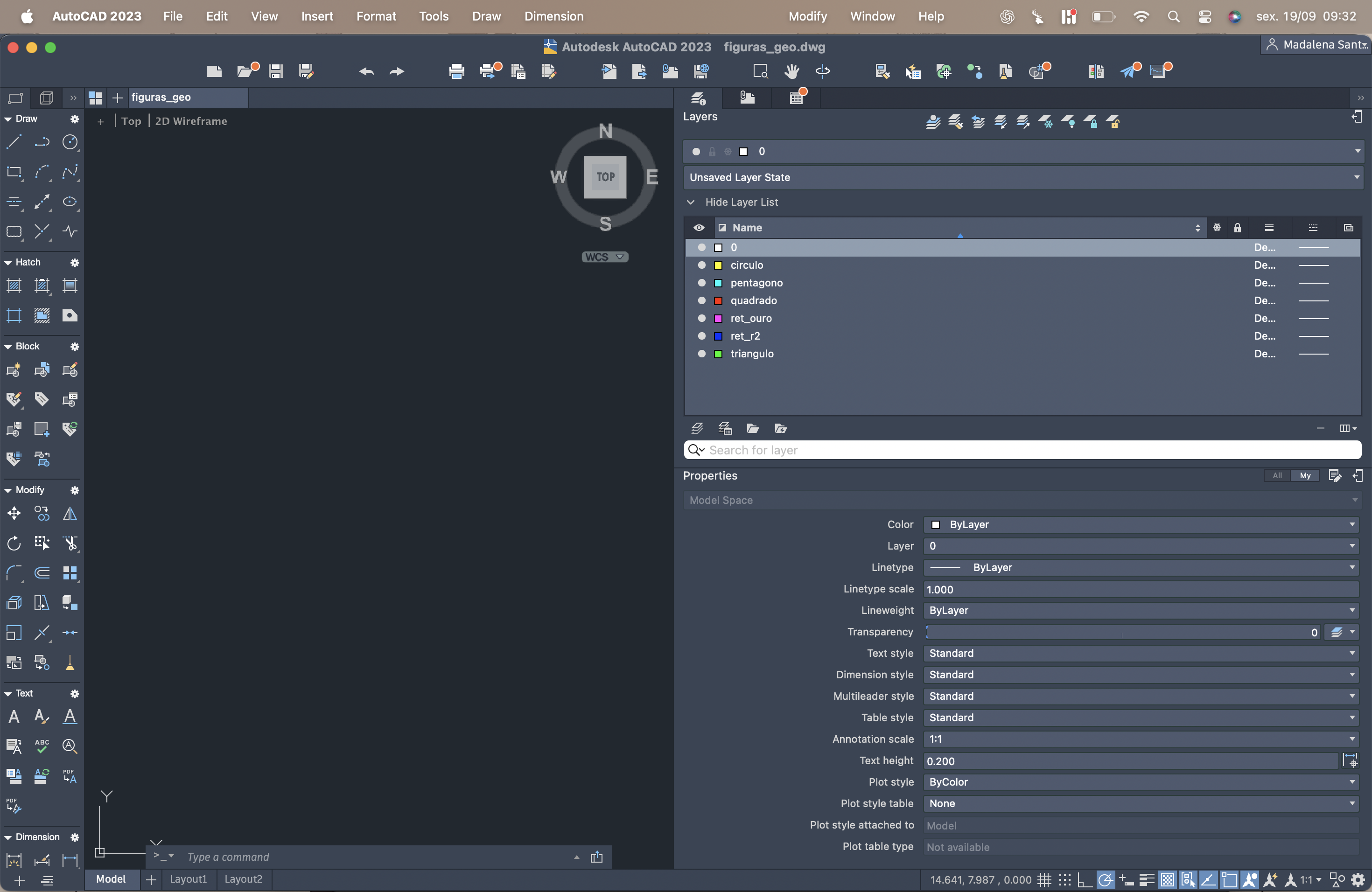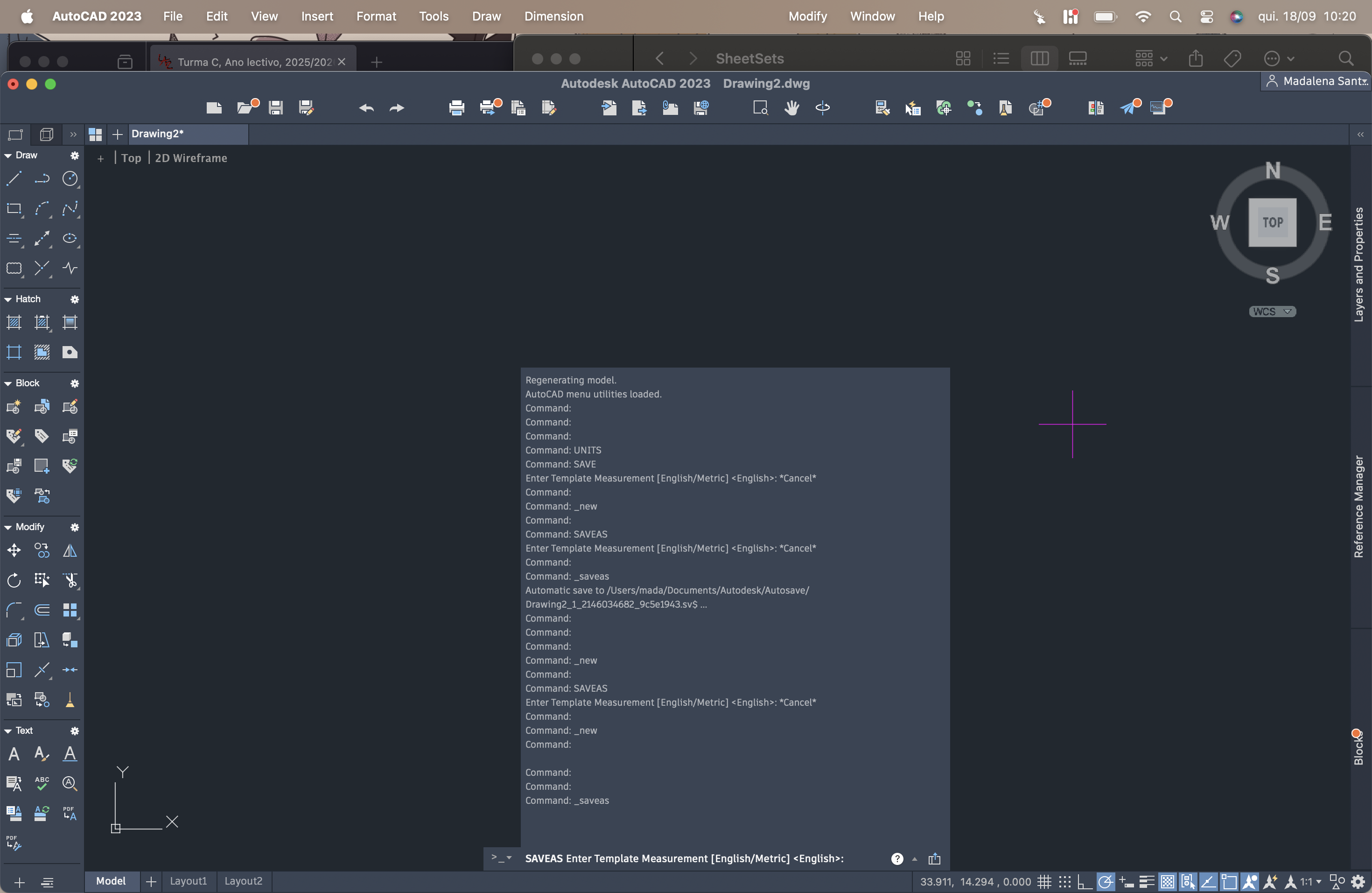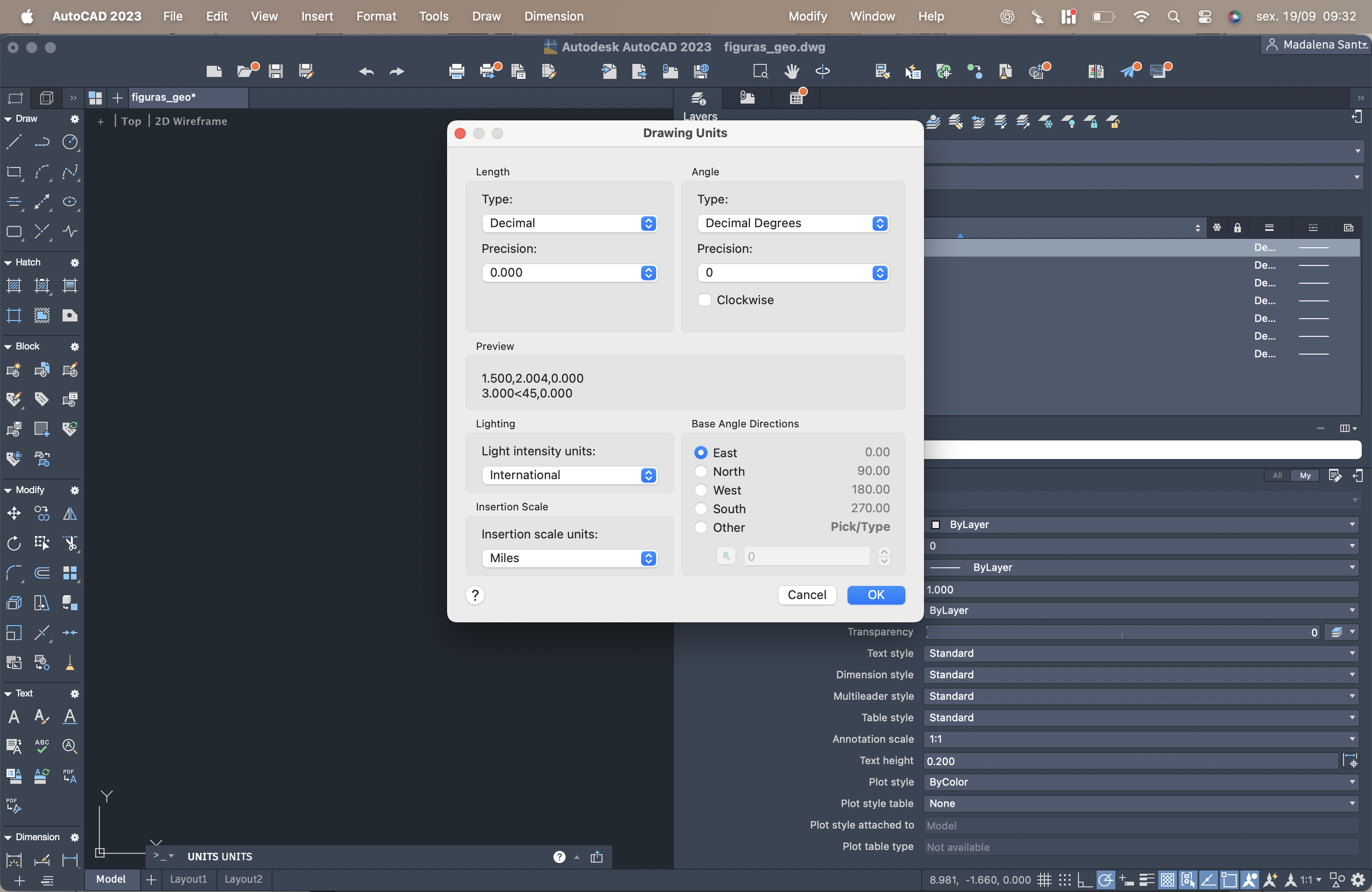 Apresentação do Autocad, criando um novo ficheiro, acad.dwg . De seguida, alterar as unidades e as preferências ditas pelo professor. Nas imagens em anexo, pode-se observar as modificações feitas.