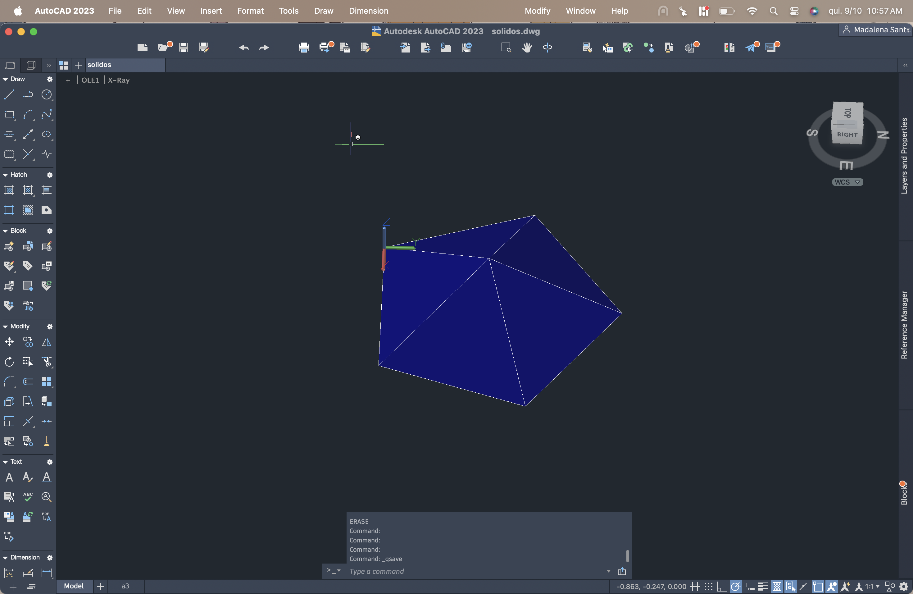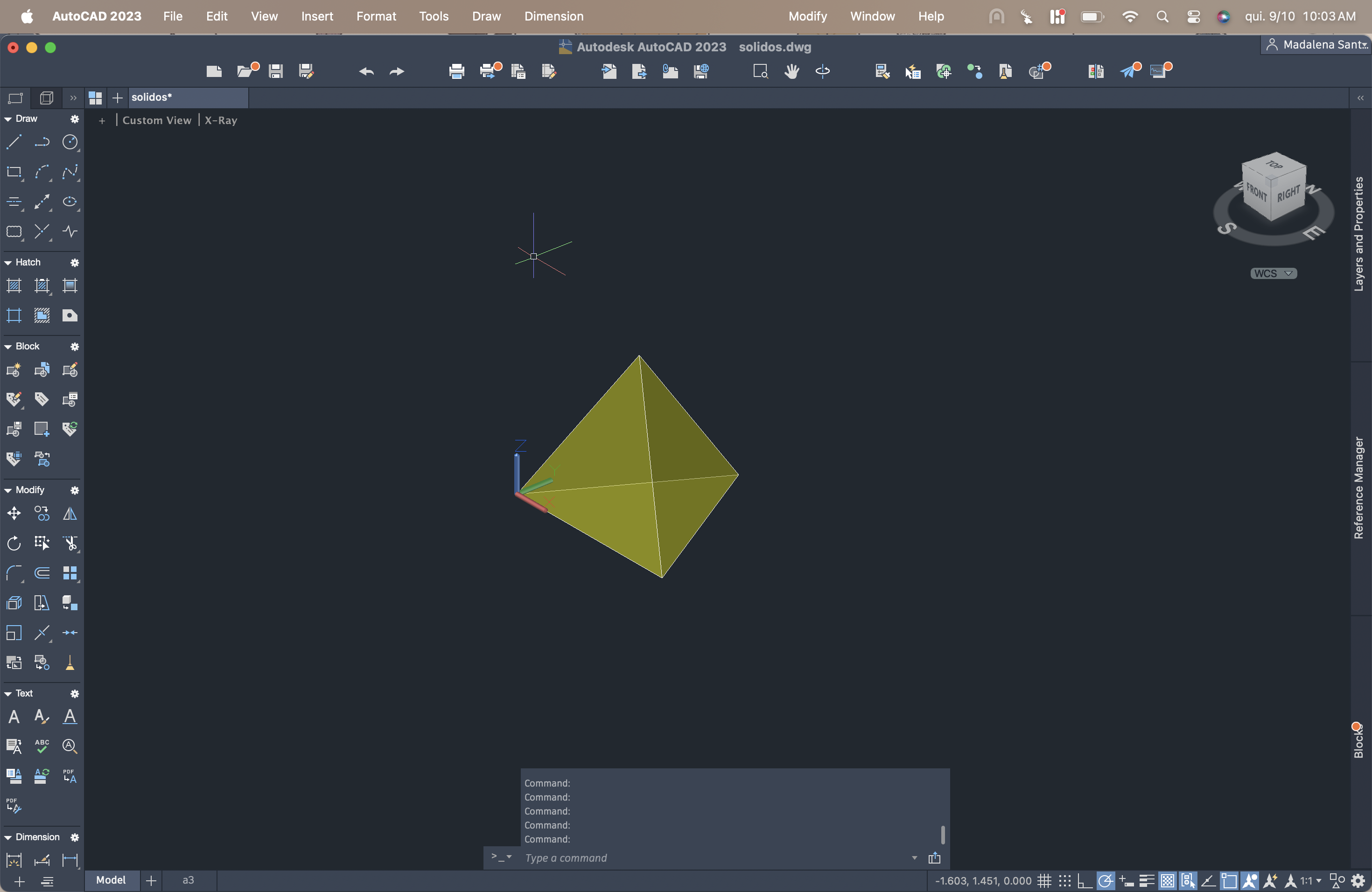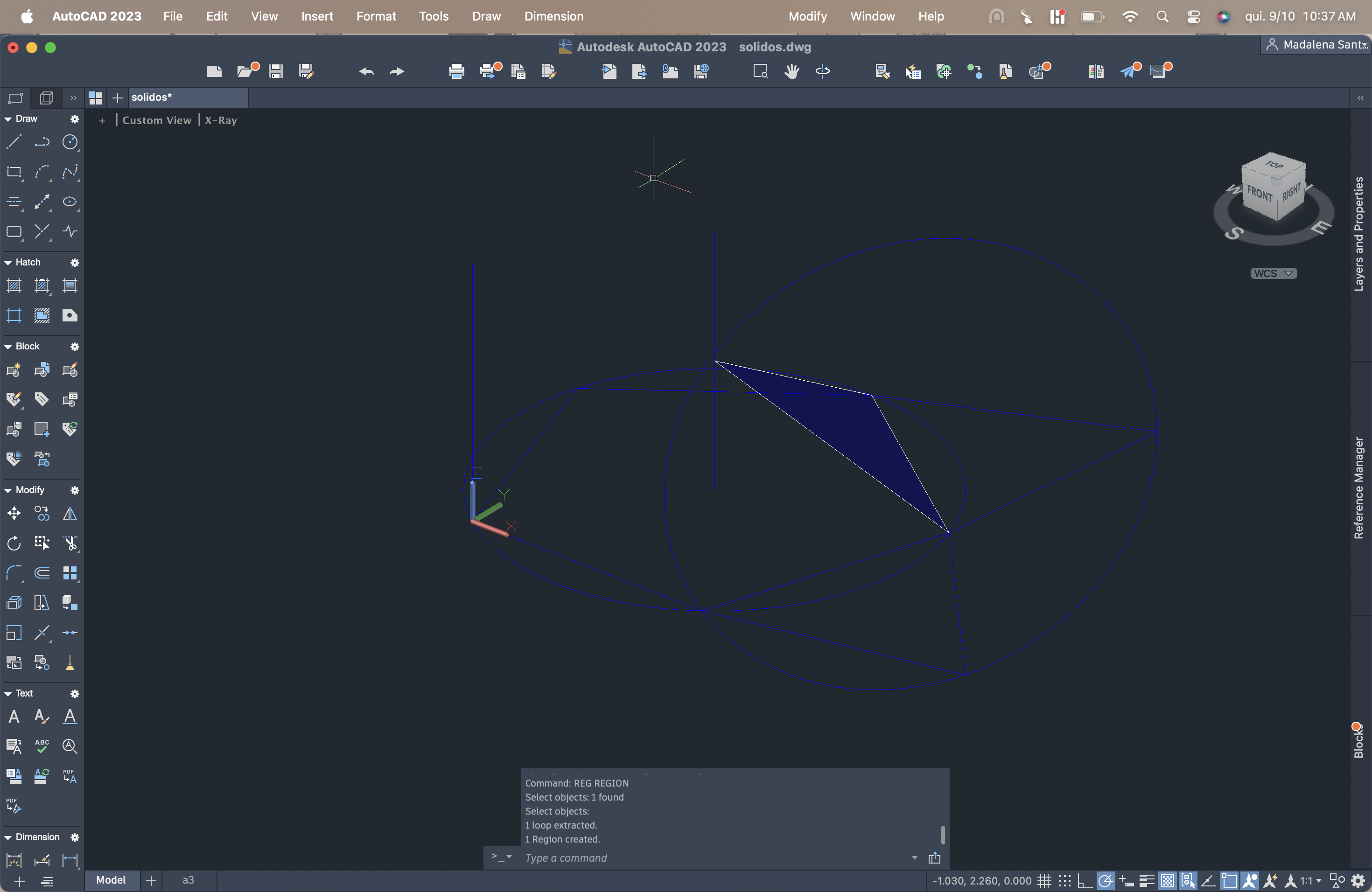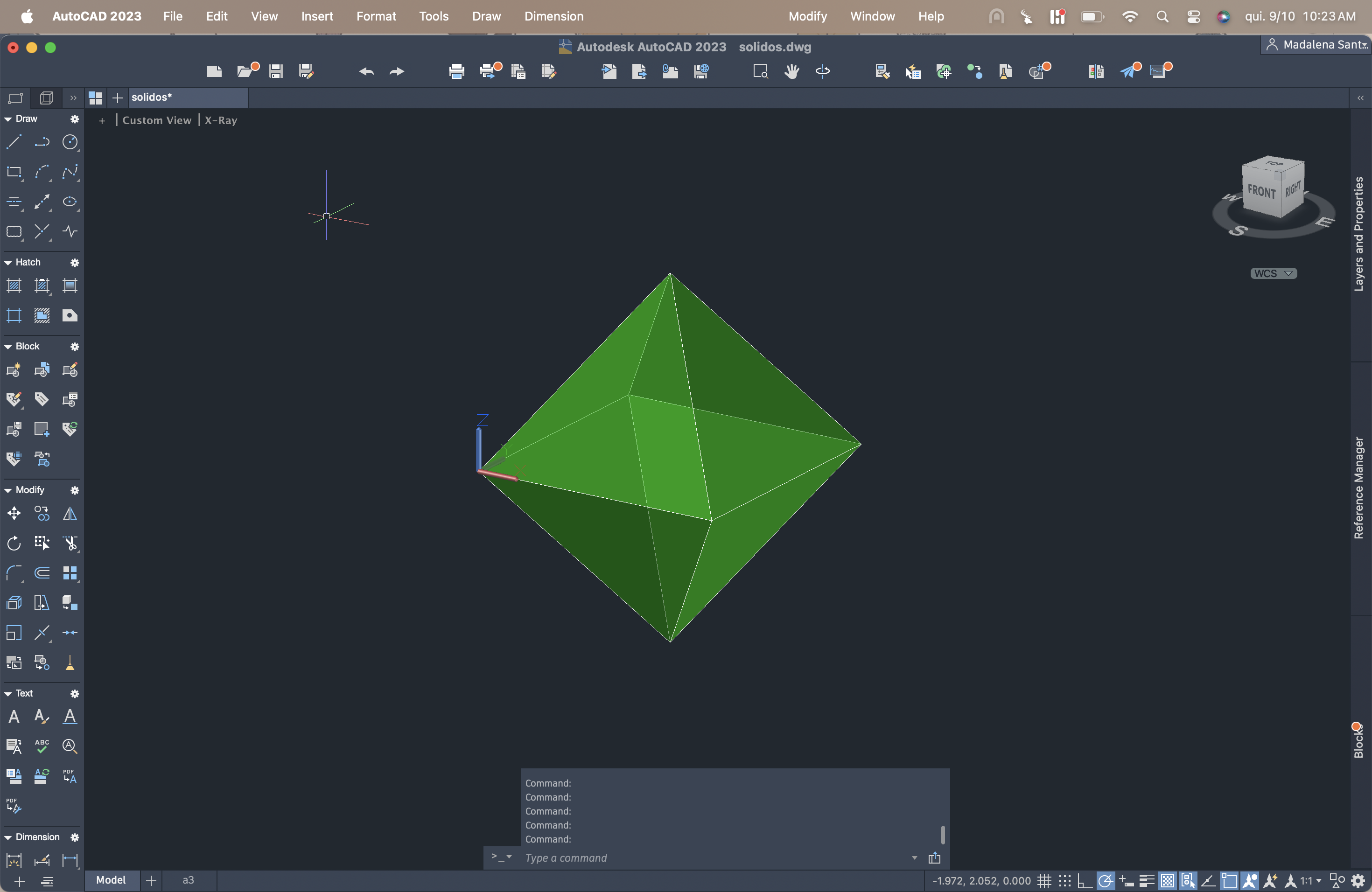 Entre cada criação dos sólidos, nas LAYERS, era pedido para fazer o comando freeze na figura acabada de criar, para não atrapalhar na criação do noco sólido.