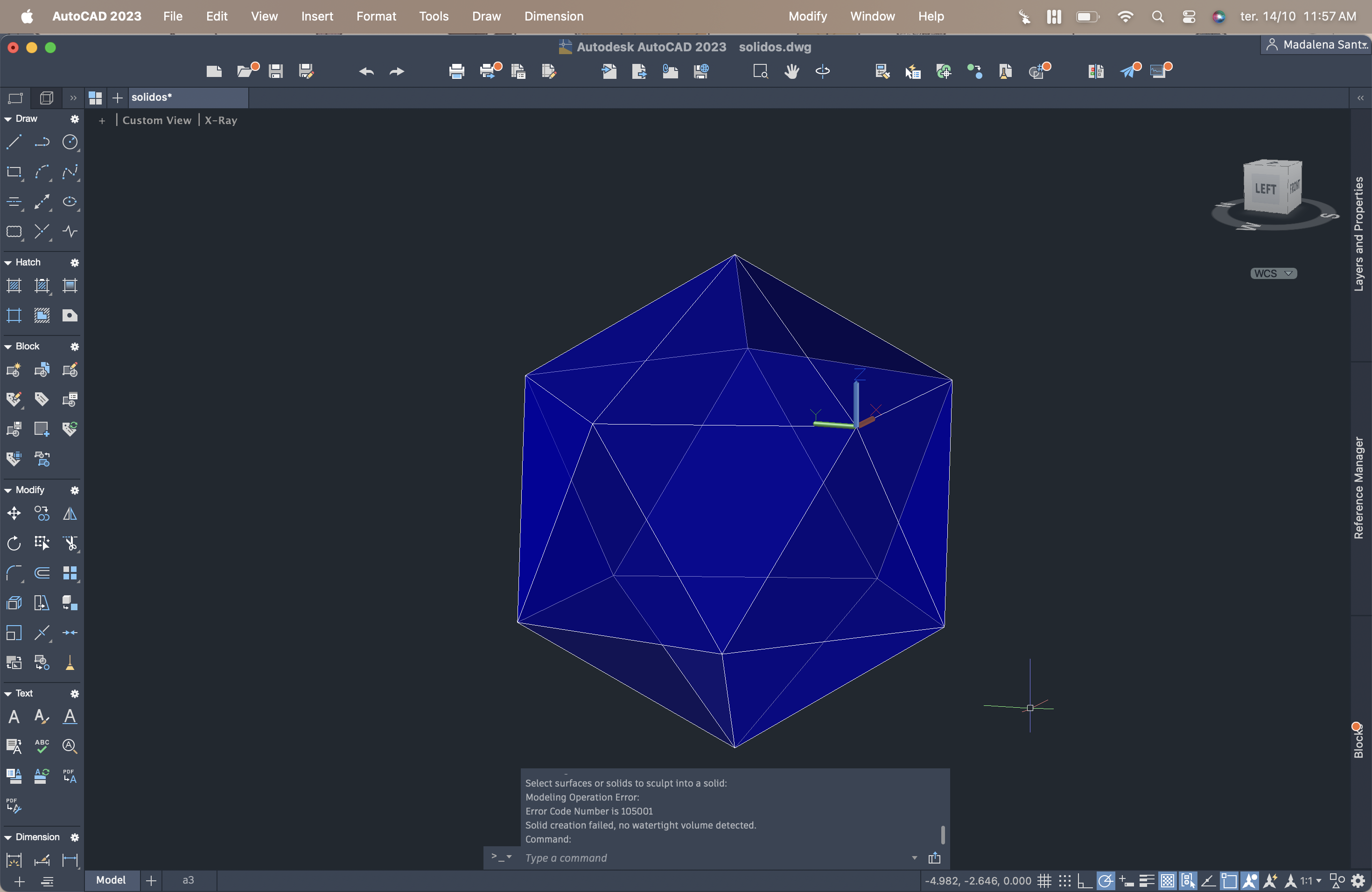 Conclusão da construção do icosaedro, com recurso aos comandos UCS (selecionando 3 pontos), ERASE e SURFSCULPT.