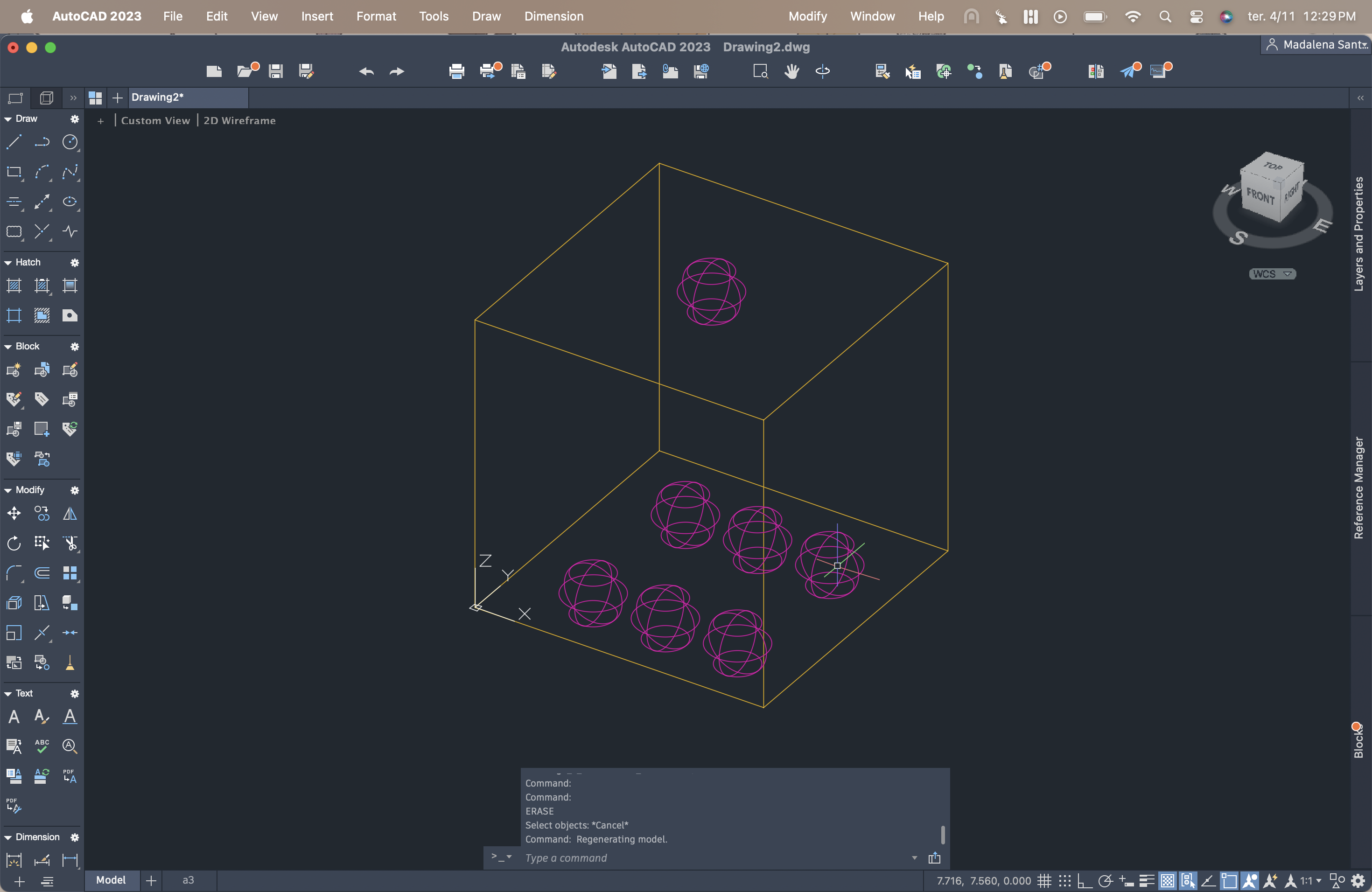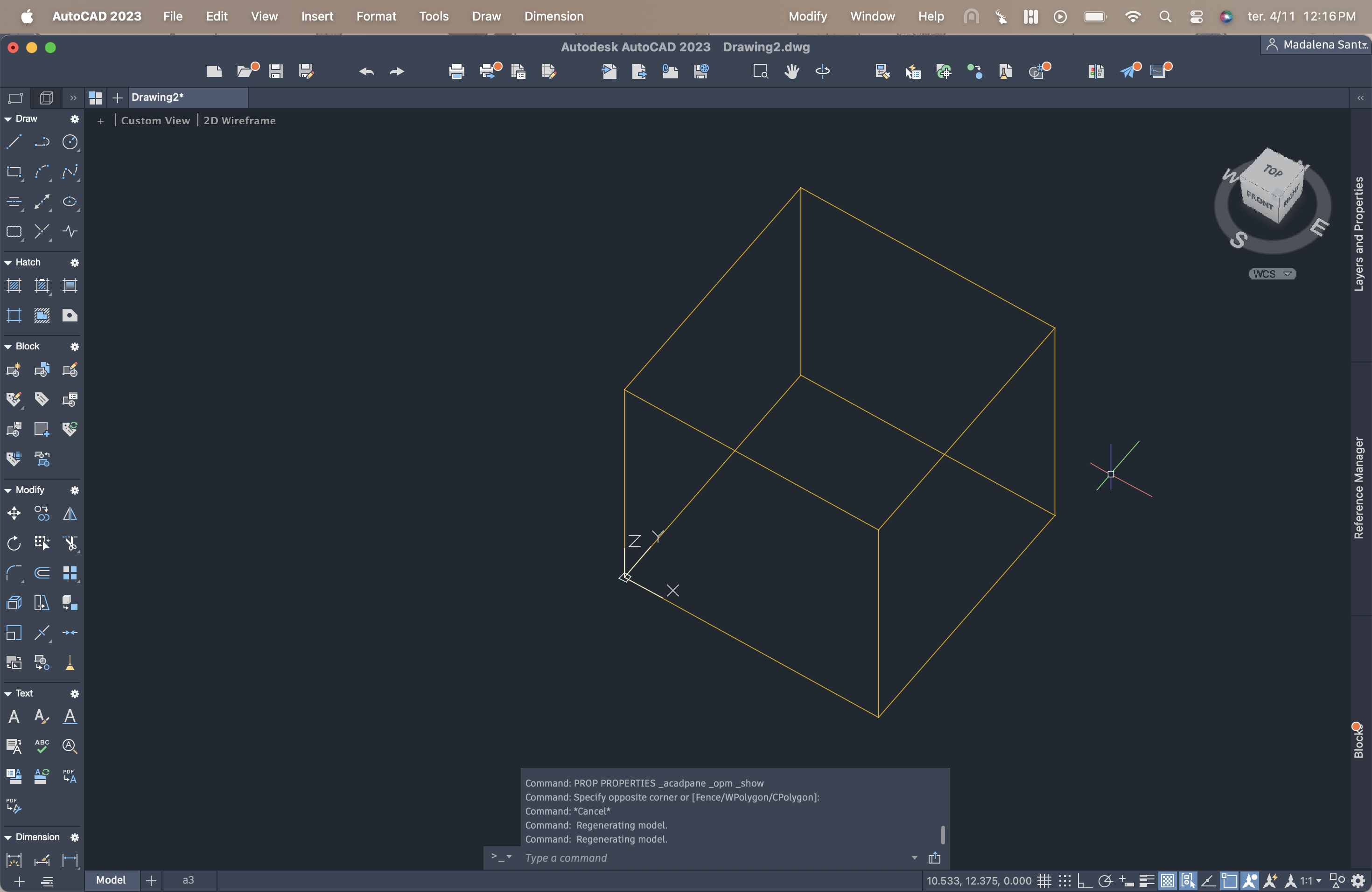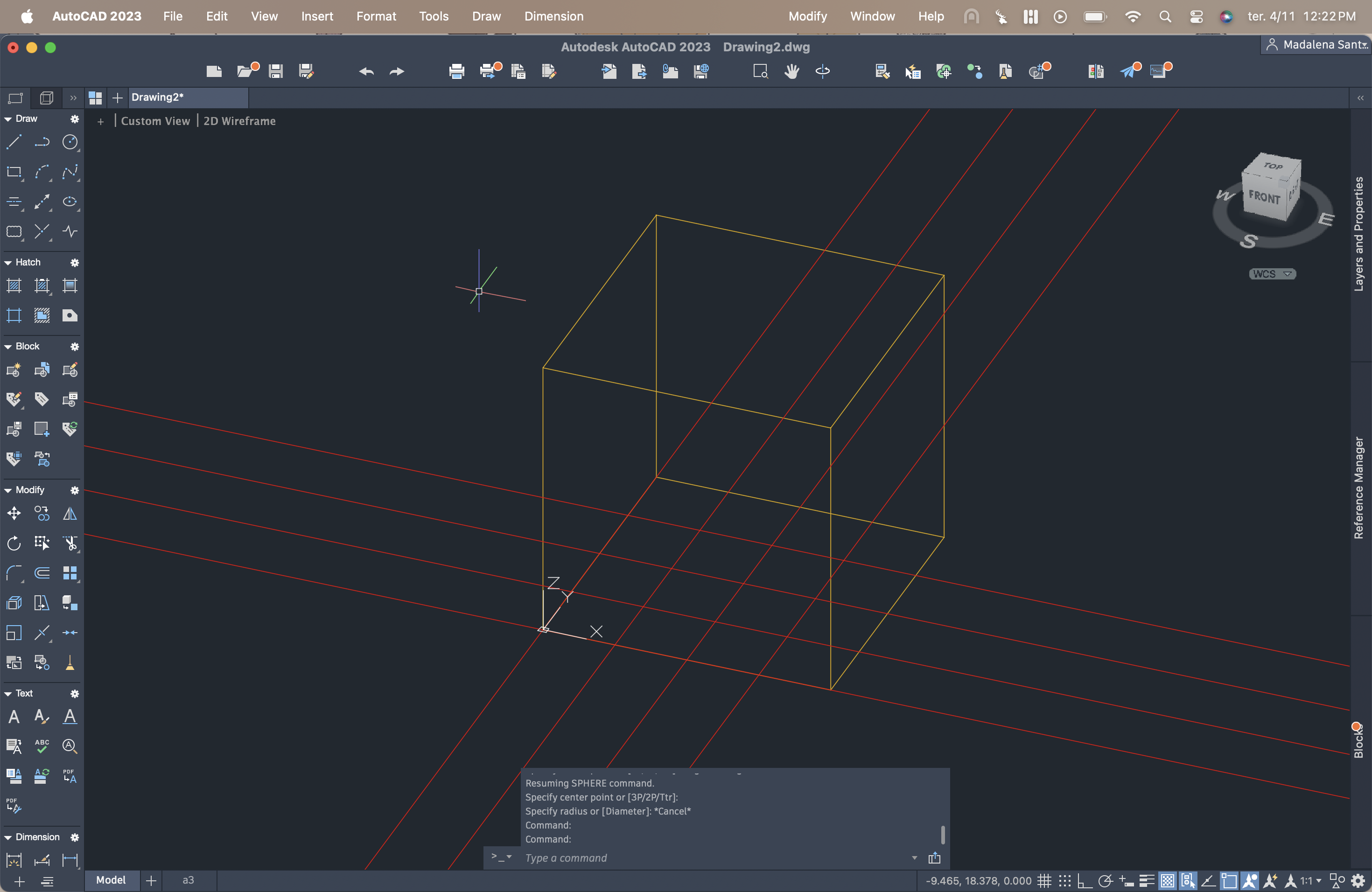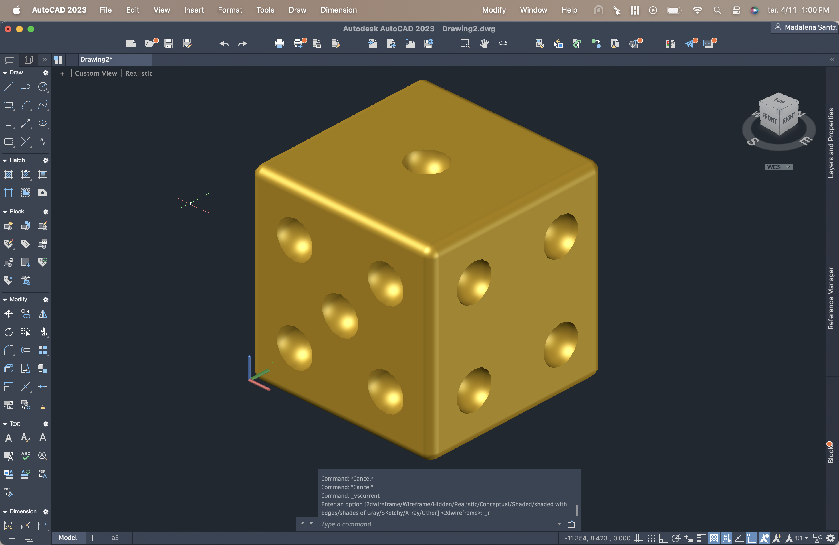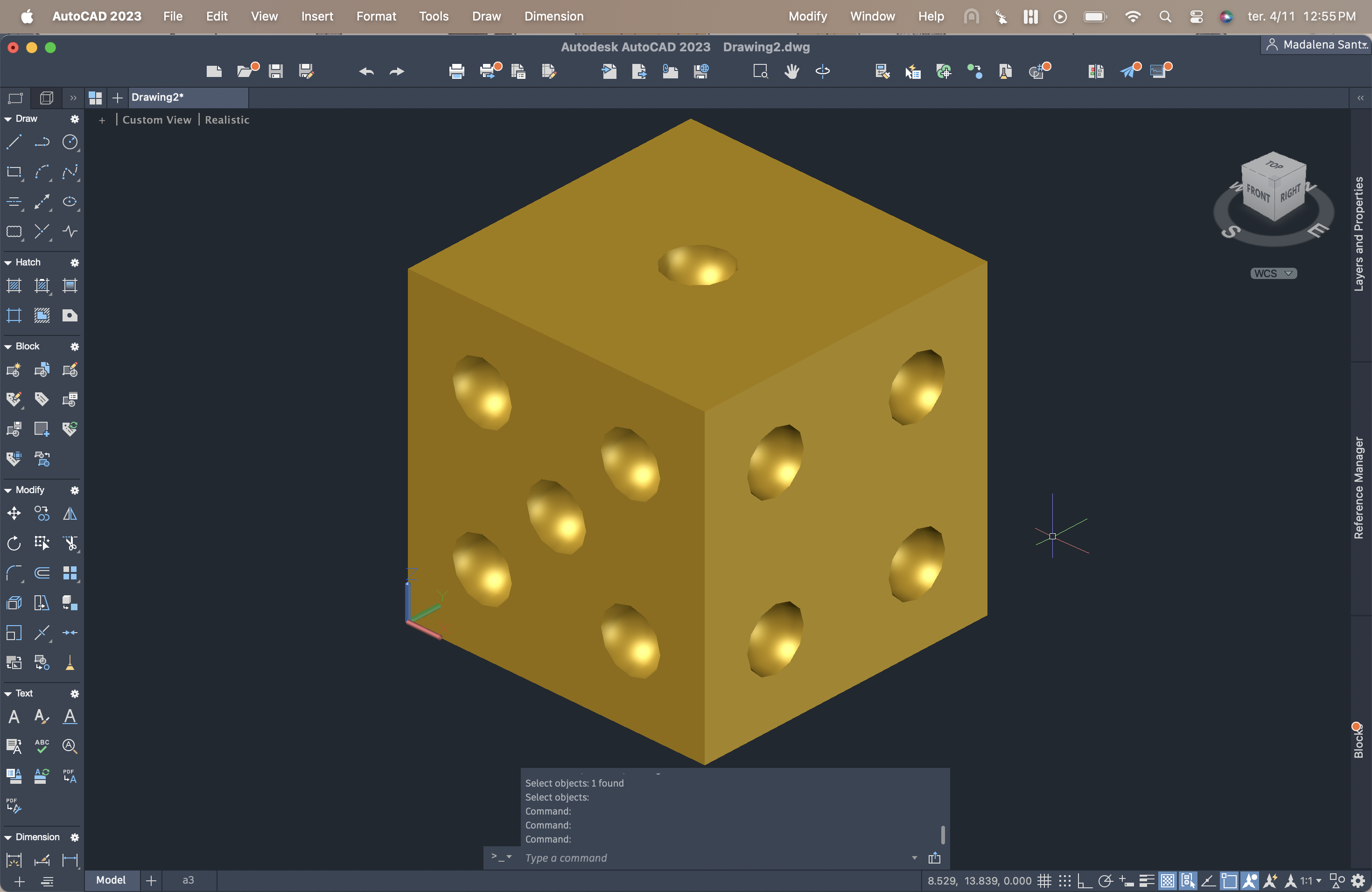 Foi iniciado um novo trabalho no AutoCAD, centrado na criação de um dado tridimensional.