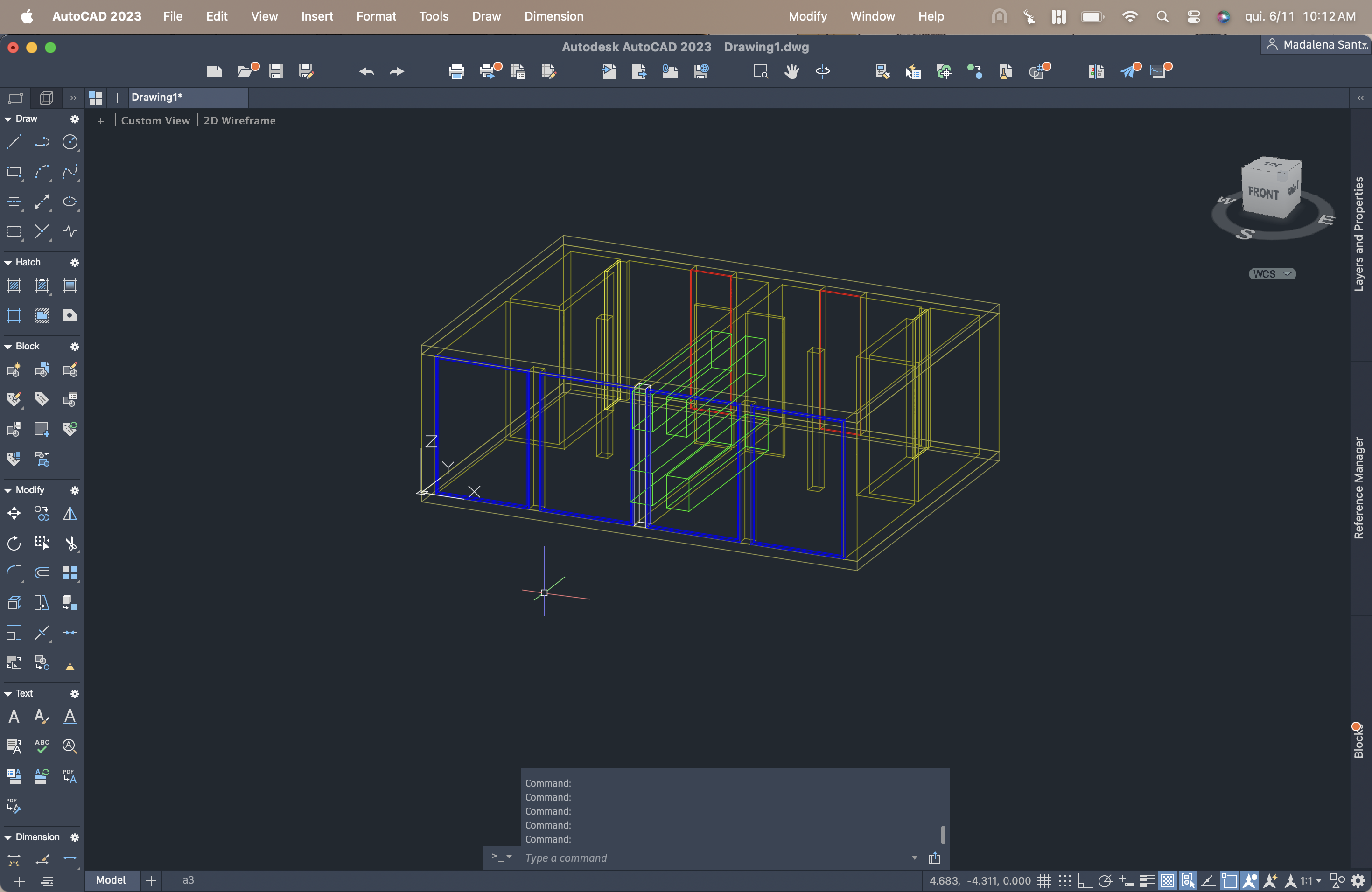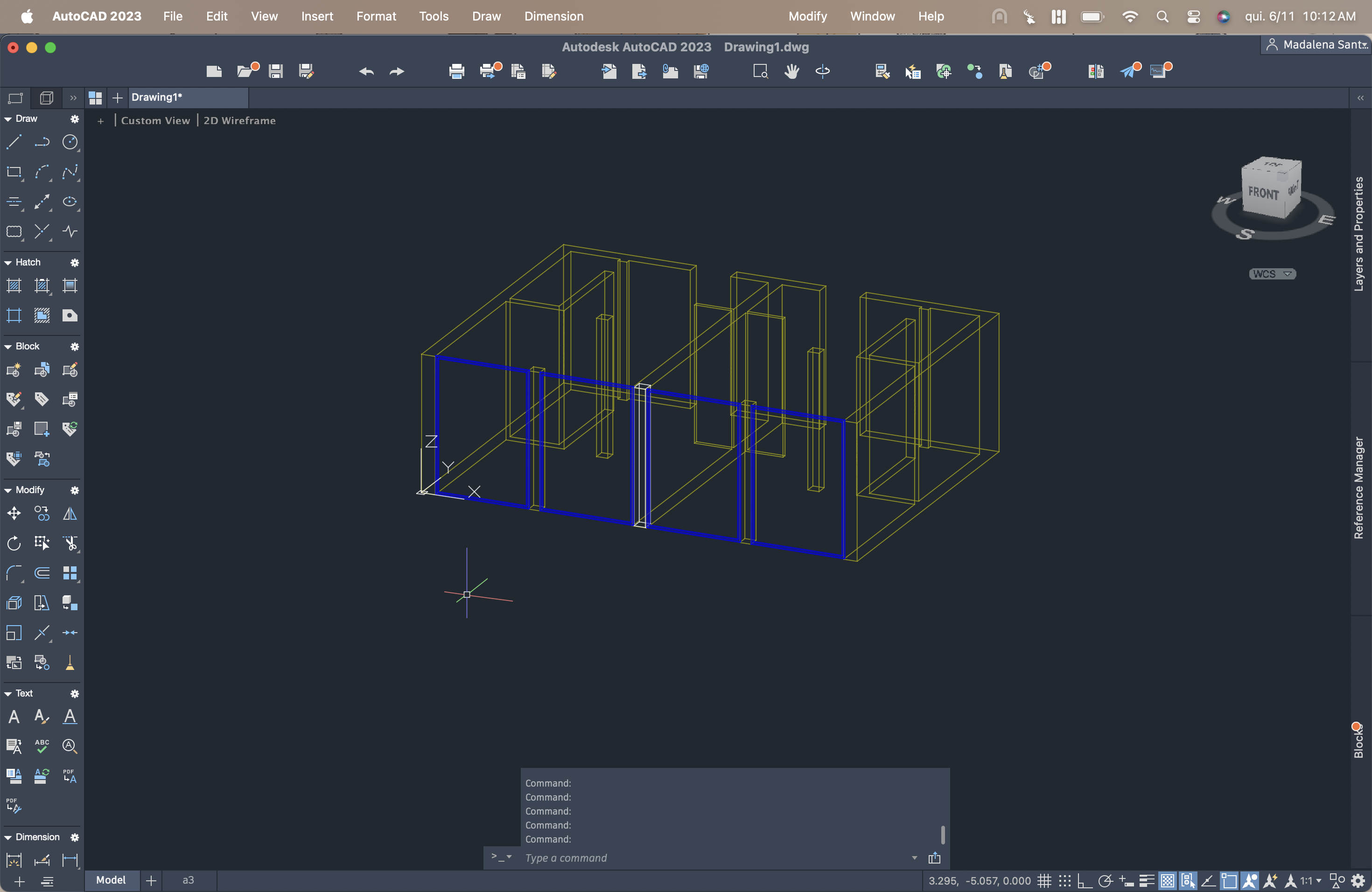 Posteriormente, foram usados os comandos UCS, RECTANG, RECION e COPY para criar os vidros e, de seguida, foram mudadas algumas configurações, através do comando UNITS. Ainda foi usado o comando SCALE, para colocar tudo à escala correta.