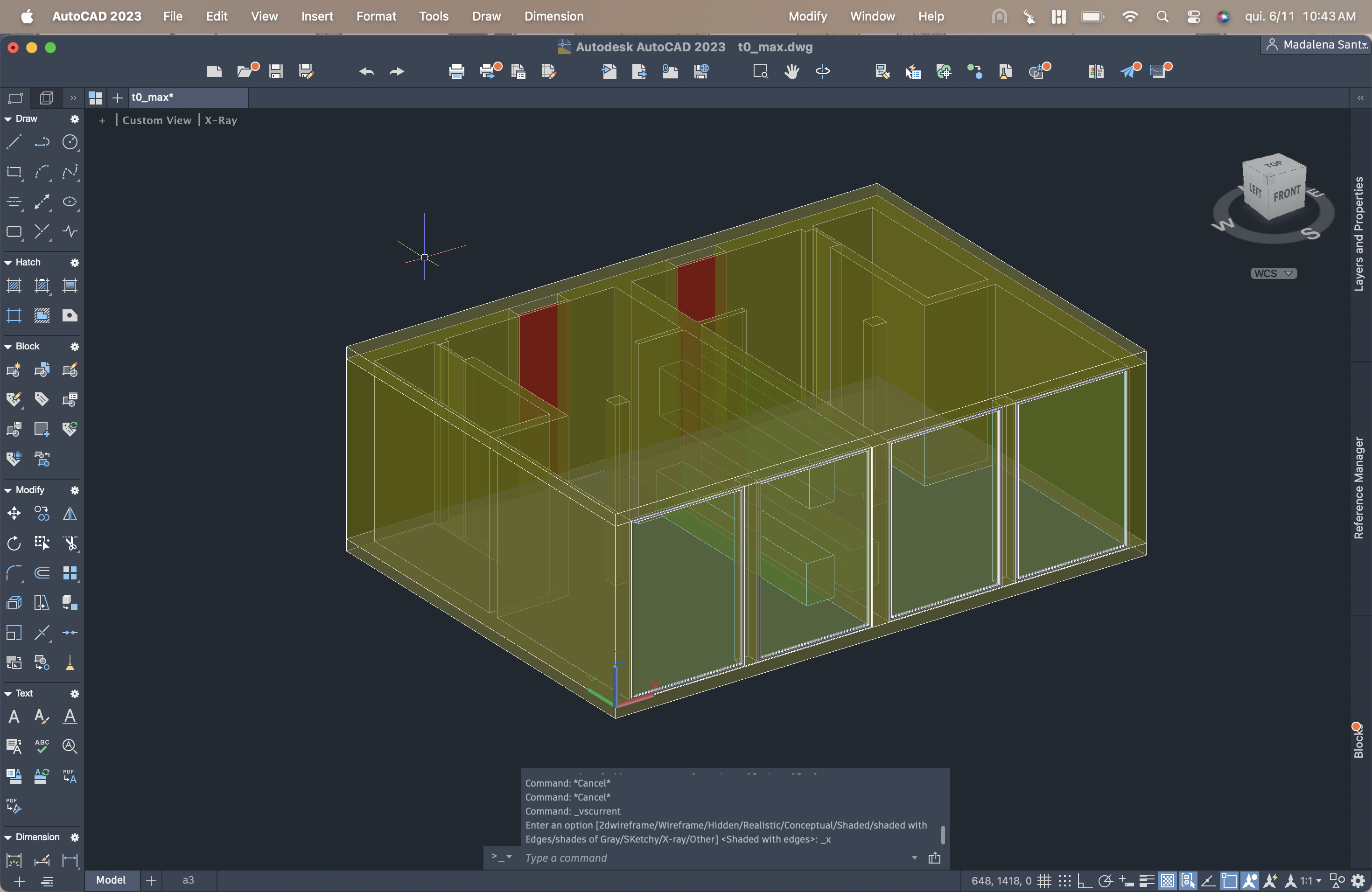 Foi iniciado um novo exercício de modelação tridimensional, dedicado à construção de um T0, com o apoio do comando T0, que foi adicionado ao programa através do comando APPLOAD.