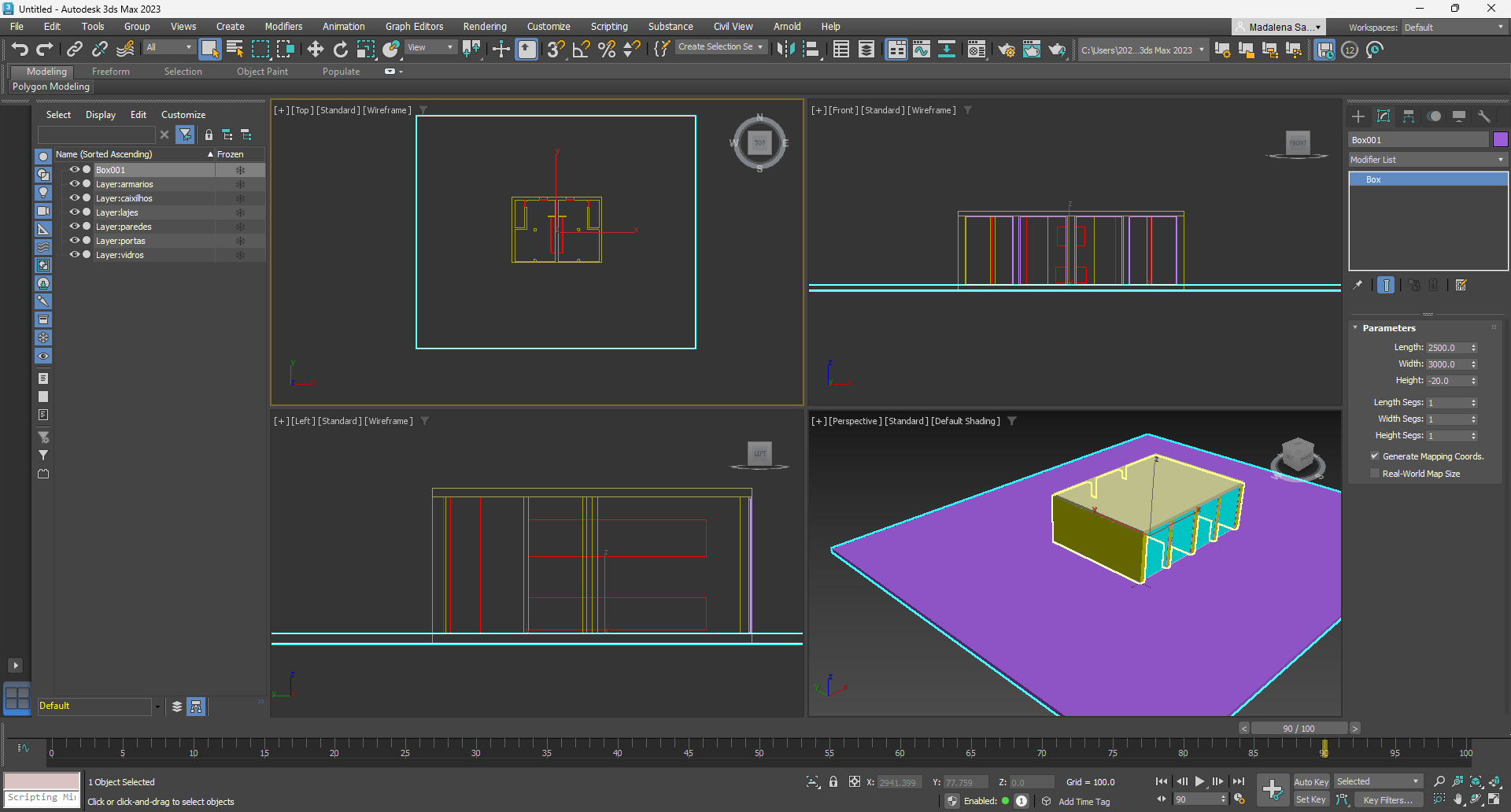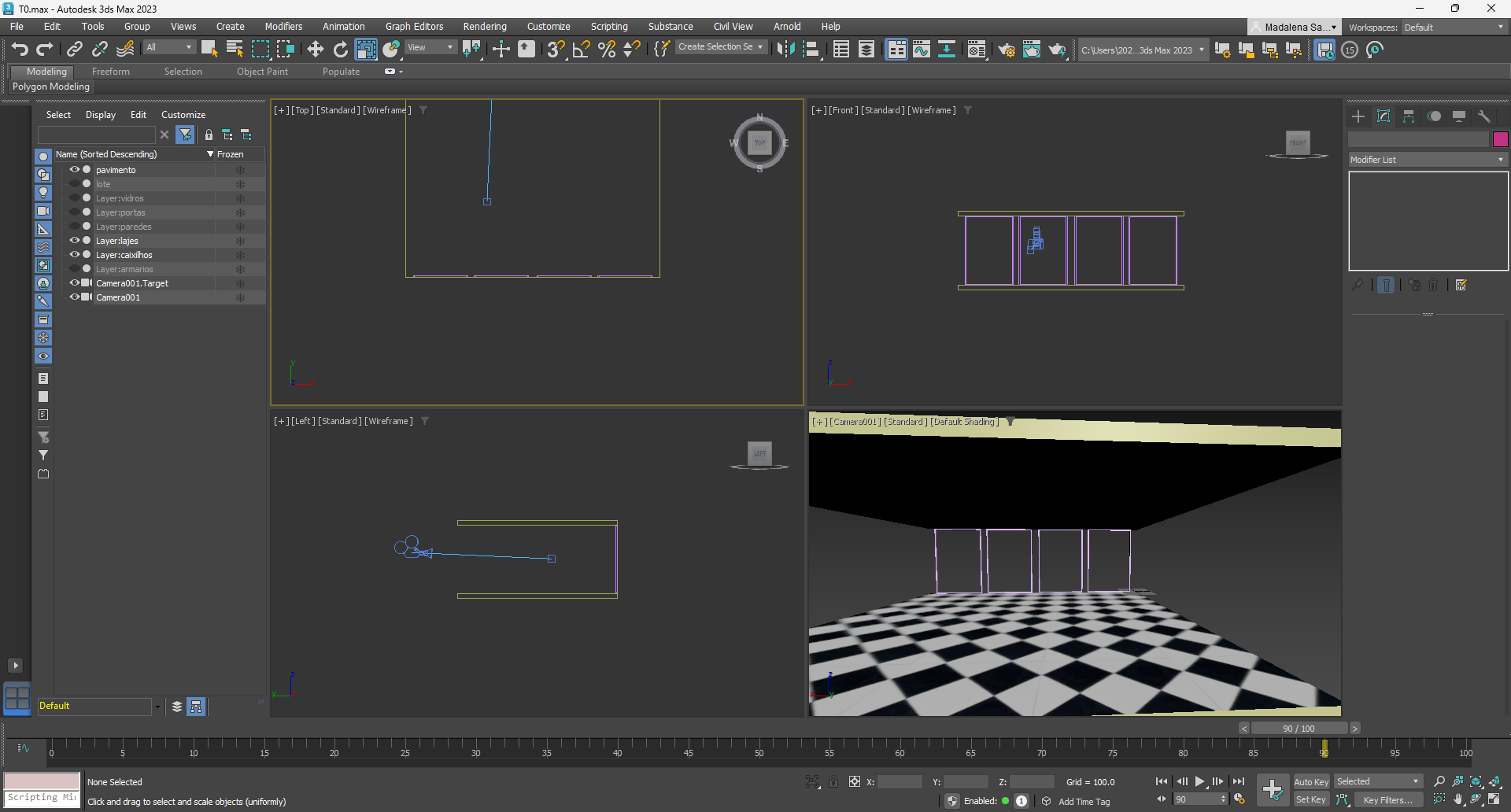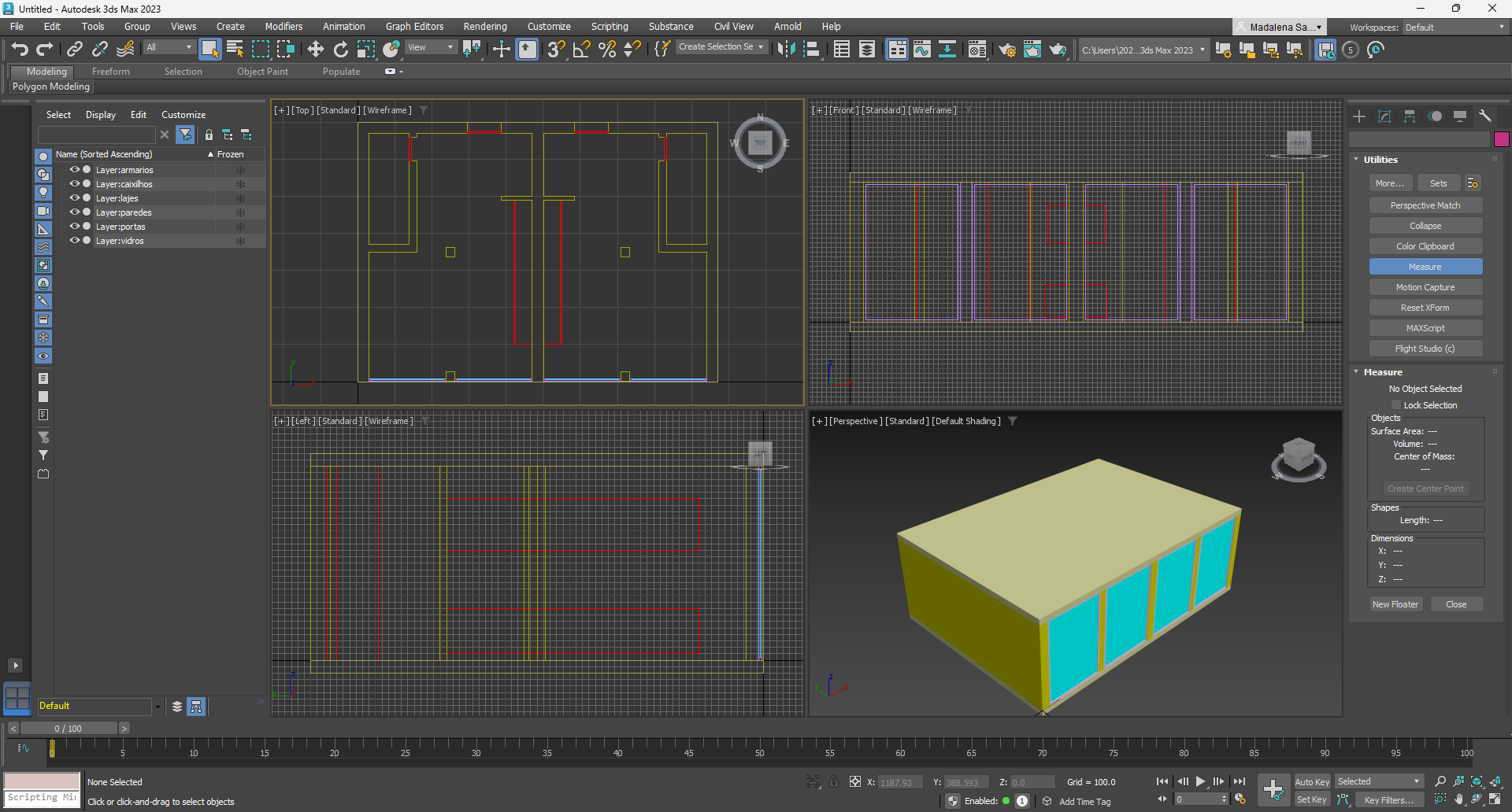 Inicio do trabalho no 3DS MAX. Criação de um novo ficheiro, onde se começou por importar o ficheiro AutoCAD "t0_max".