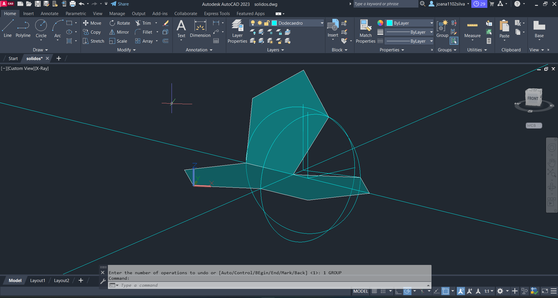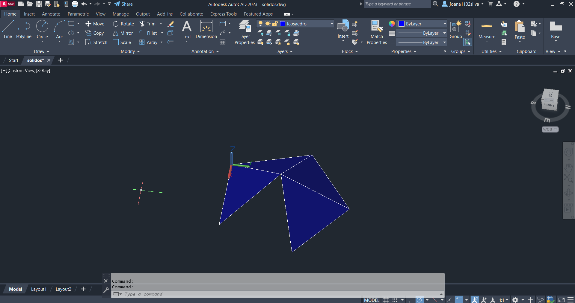 Introdução ao 3D no AutoCAD. Criação de cinco sólidos: cubo, tetraedro, octaedro, dodecaedro, icosaedro. Criação de 5 layers. Utilizamos os comandos: RECTANG, REGION, COPY, 3DORBIT, UCS, ROTATE, SURFSCULPT, XLINE, LINE, CIRCLE, POLYGON, 3DPOLY, ARRAY, ARRAYCLASSIC e AL.