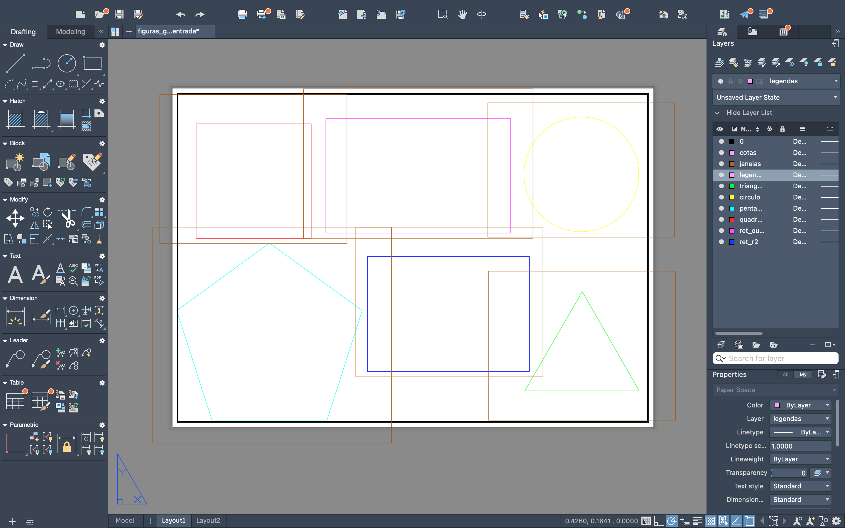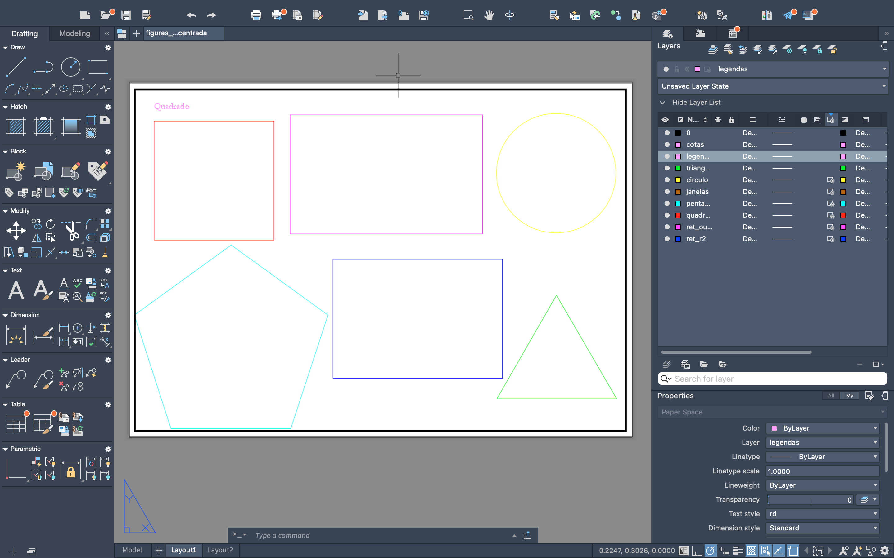Criação de mais uma layer, com o nome "janelas", para colocar e organizar os poligonos no layout A3, anteriormente criado.
