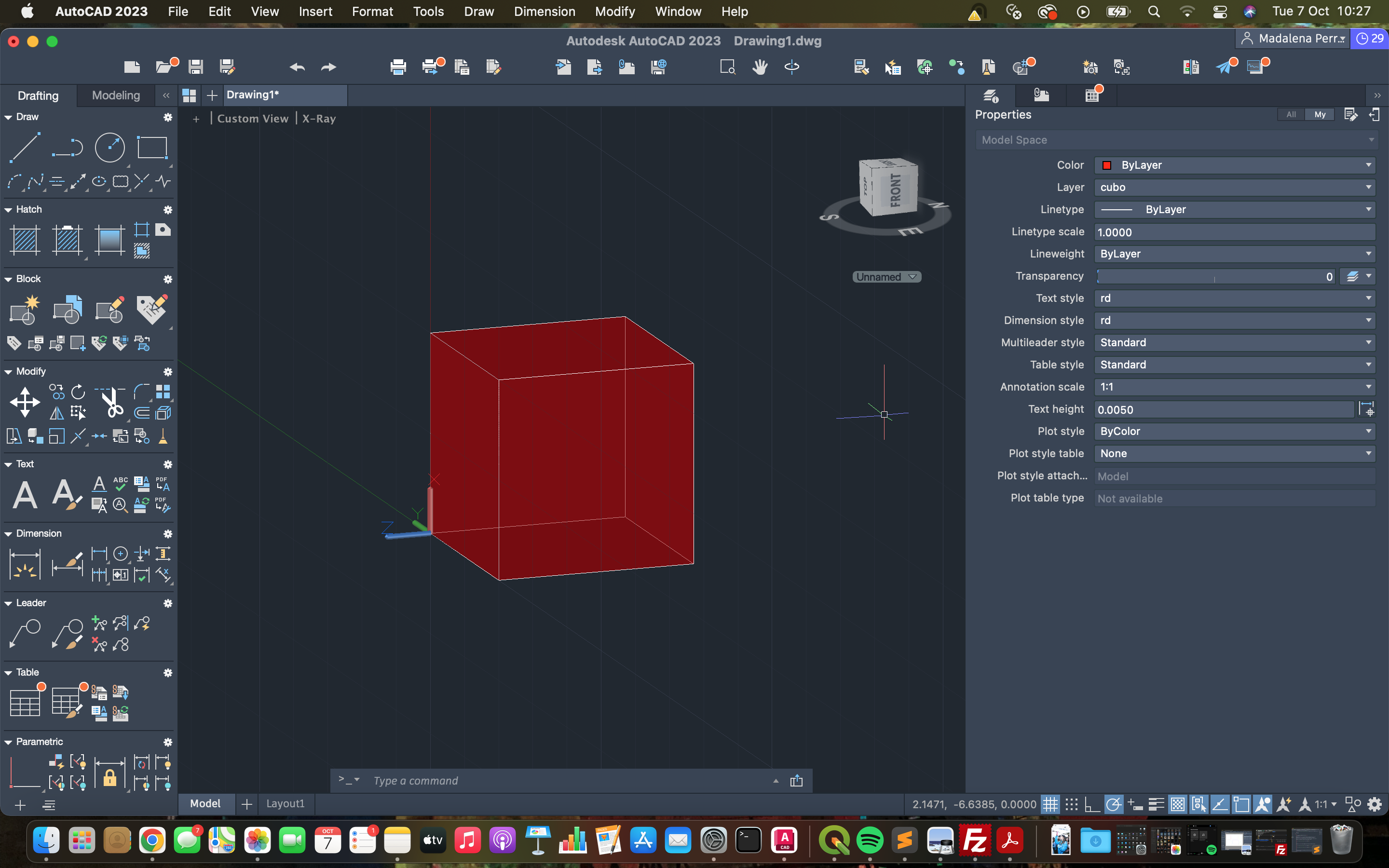 Criação do cubo com a ajuda de alguns comandos, entre estes os seguintes: "LINE", "REGION" e "MIRROR". Depois do desenvolvimento da primeira etapa, seguimos para a construção do cubo através dos comandos "UCS" (mudança dos eixos), "ROTATE" e "SURFSCULPT".