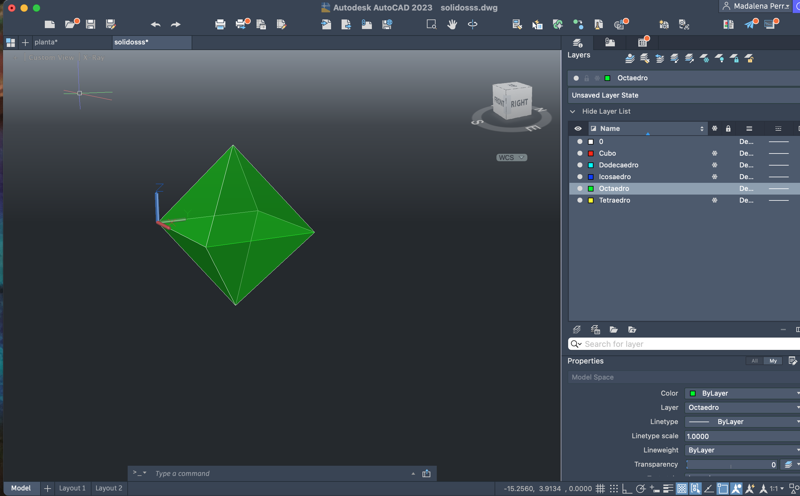 Criação de cinco layers diferentes para cada um dos sólidos a desenvolver: