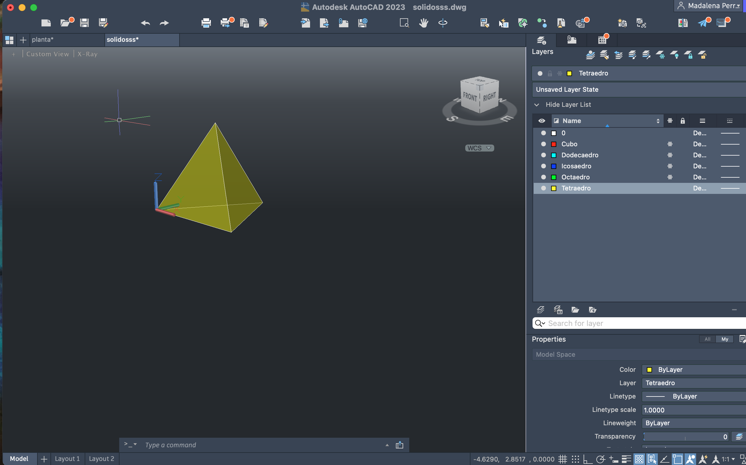 - Um tetraedro (amarelo);