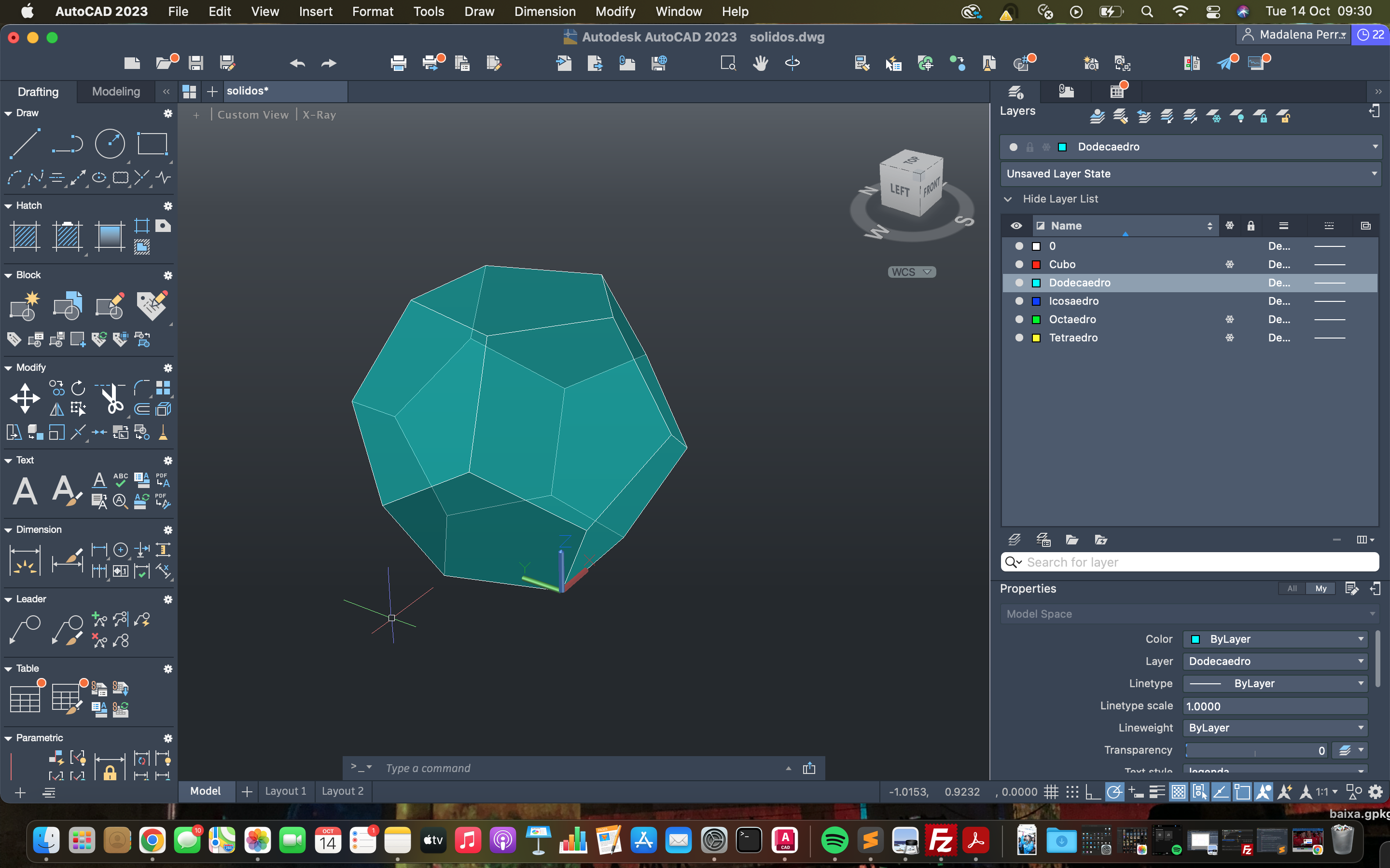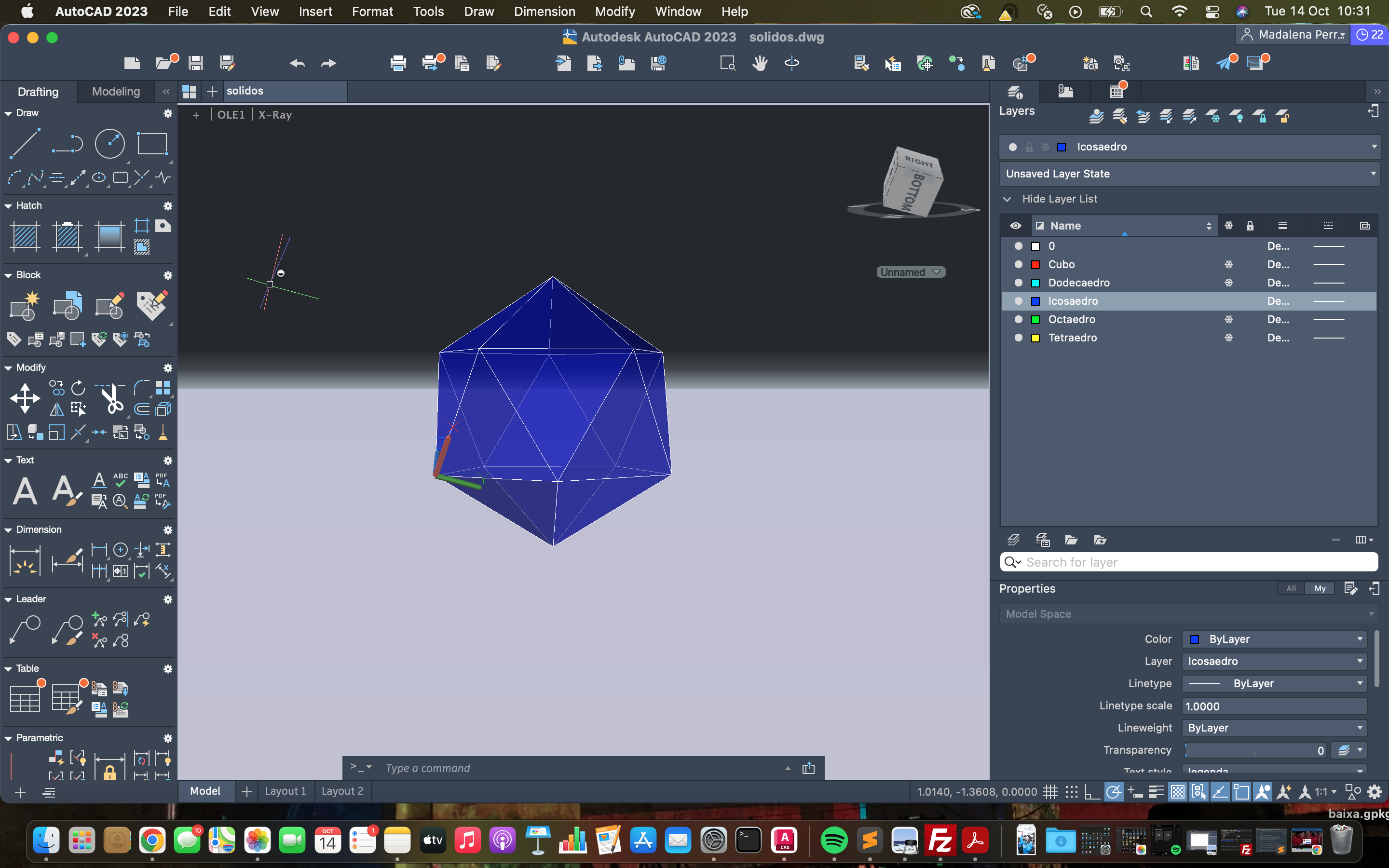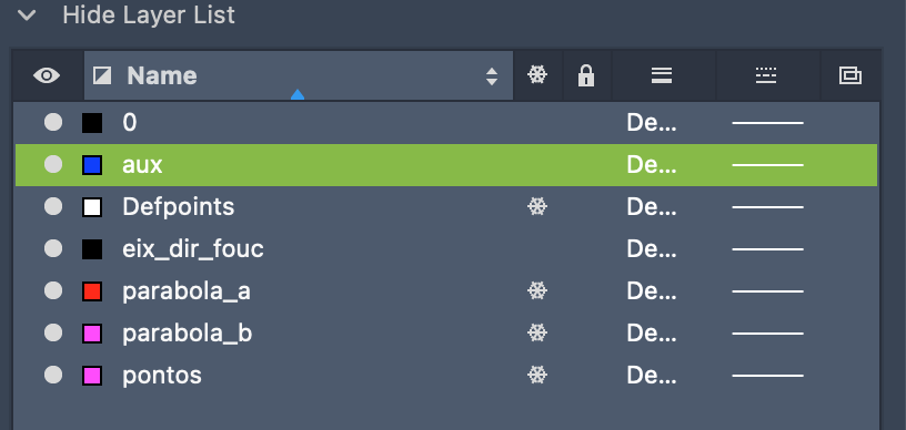 Criação de cinco layers diferentes para cada um dos sólidos a desenvolver: