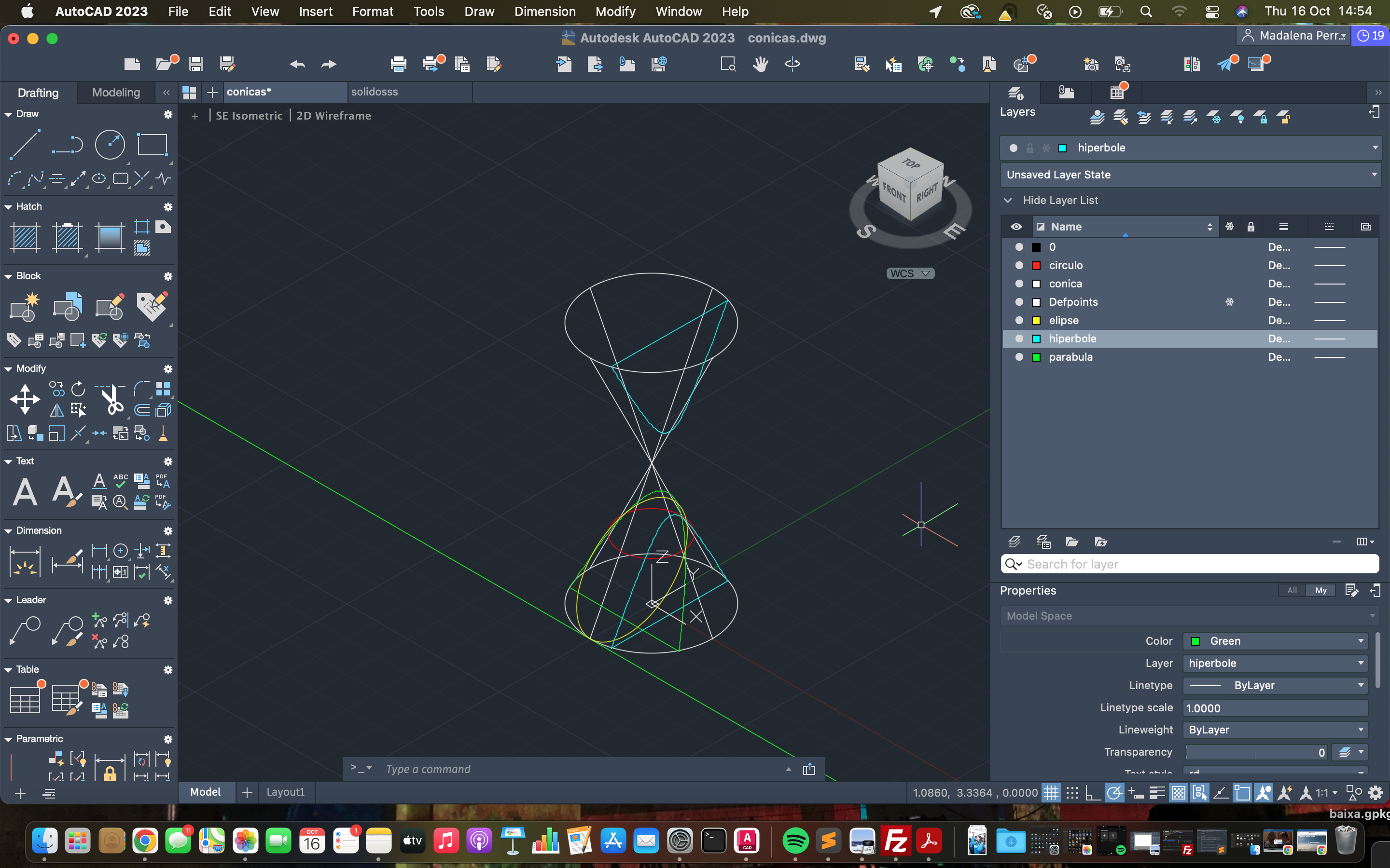 Início de um novo exercício intitulado cónicas em que iremos representar as secções de 2 cones.