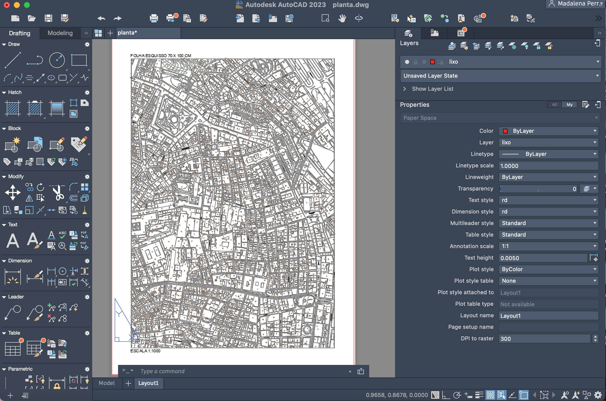 Início de um novo exercício de importação e manuseamento de uma planta. A planta utilizada foi a planta da zona de intervenção da cadeira de projeto que se localiza no Bairro Alto.