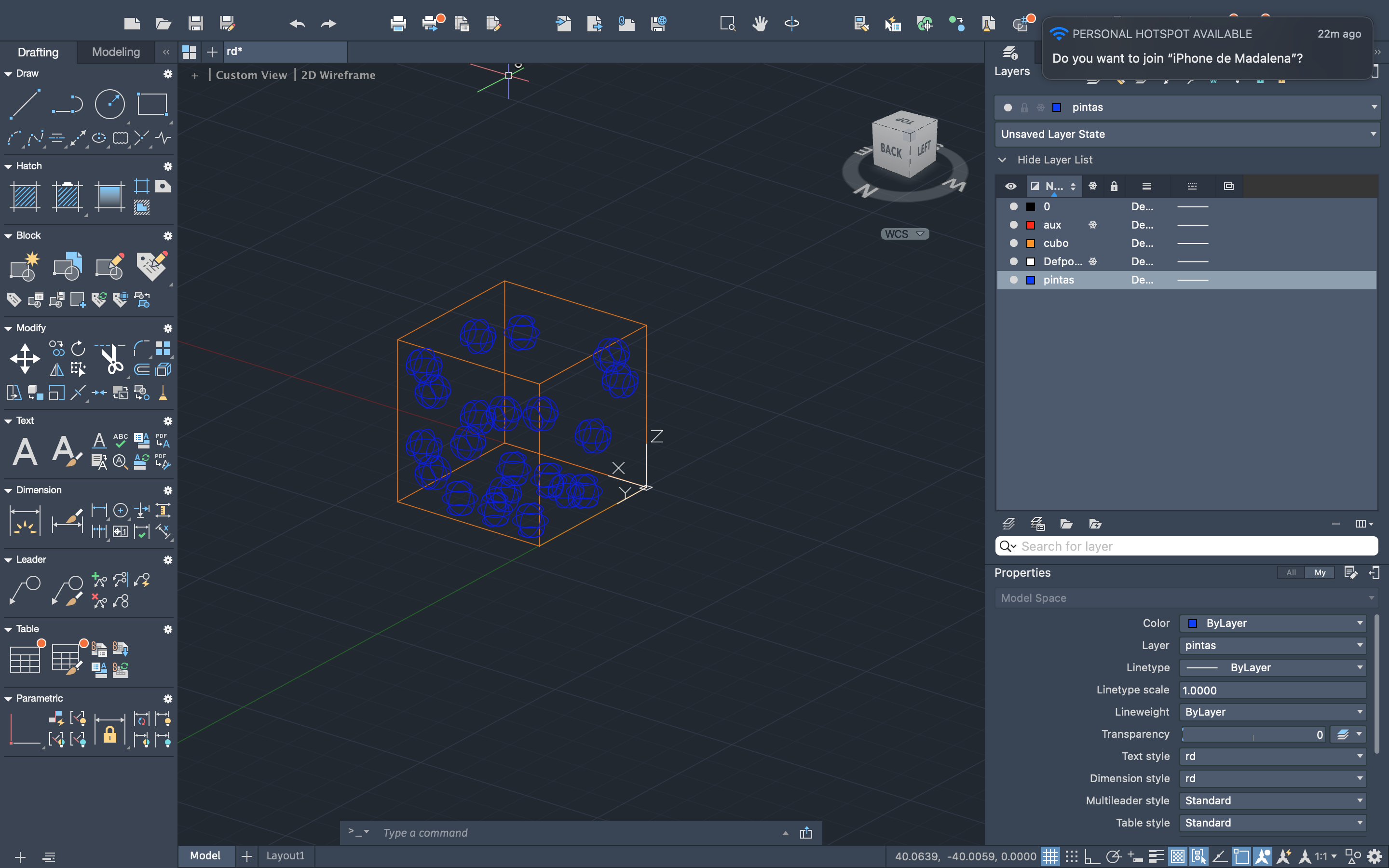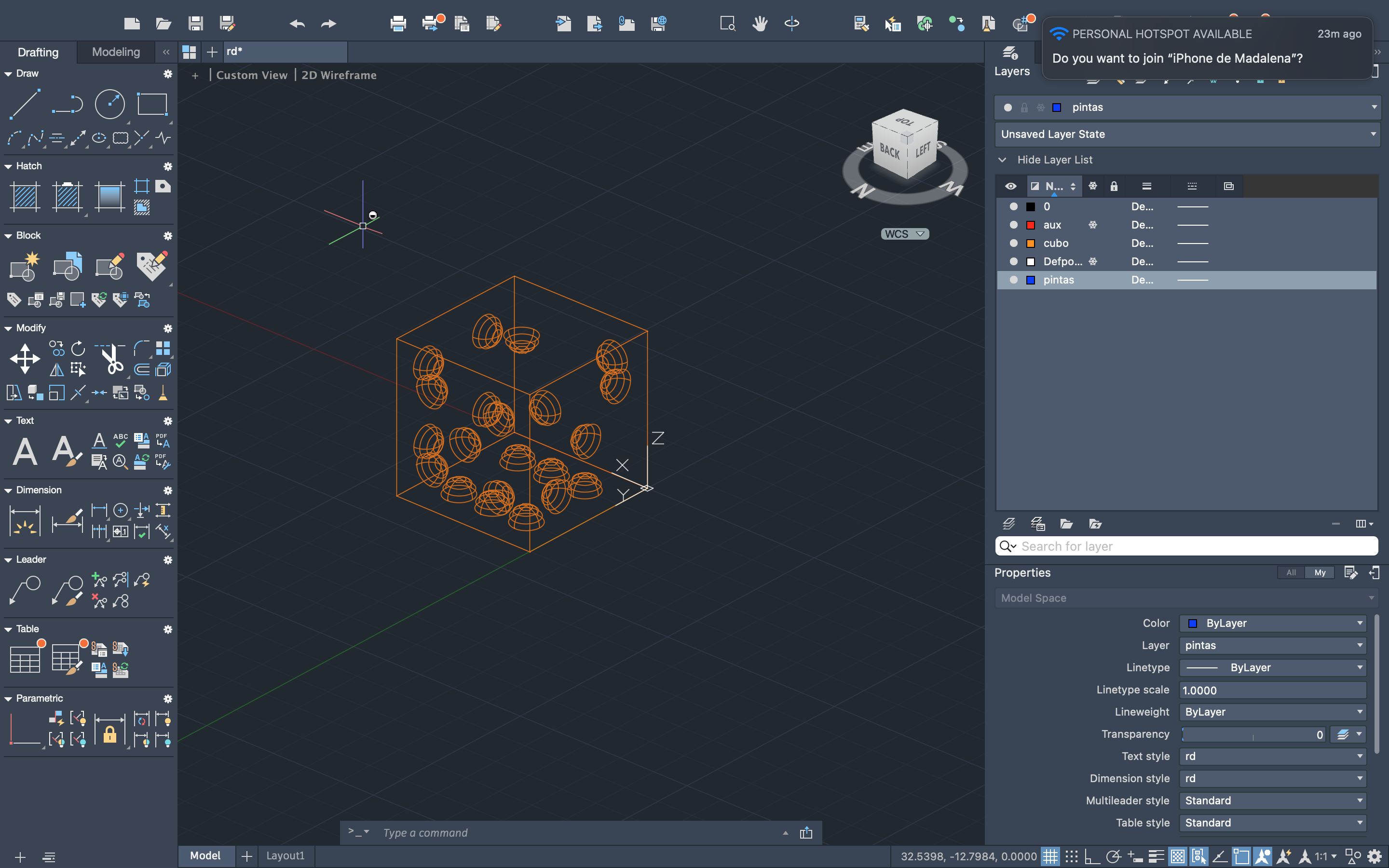 Início de um novo exercício de criação de um dado, num novo ficheiro AutoCAD.