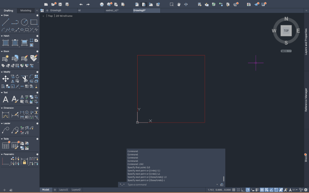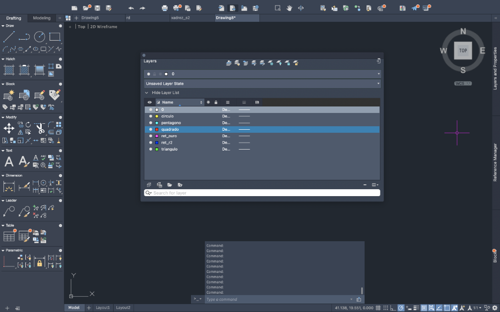 Exploração do AutoCAD e criaçãde layers e de polígonos (quadrado).
