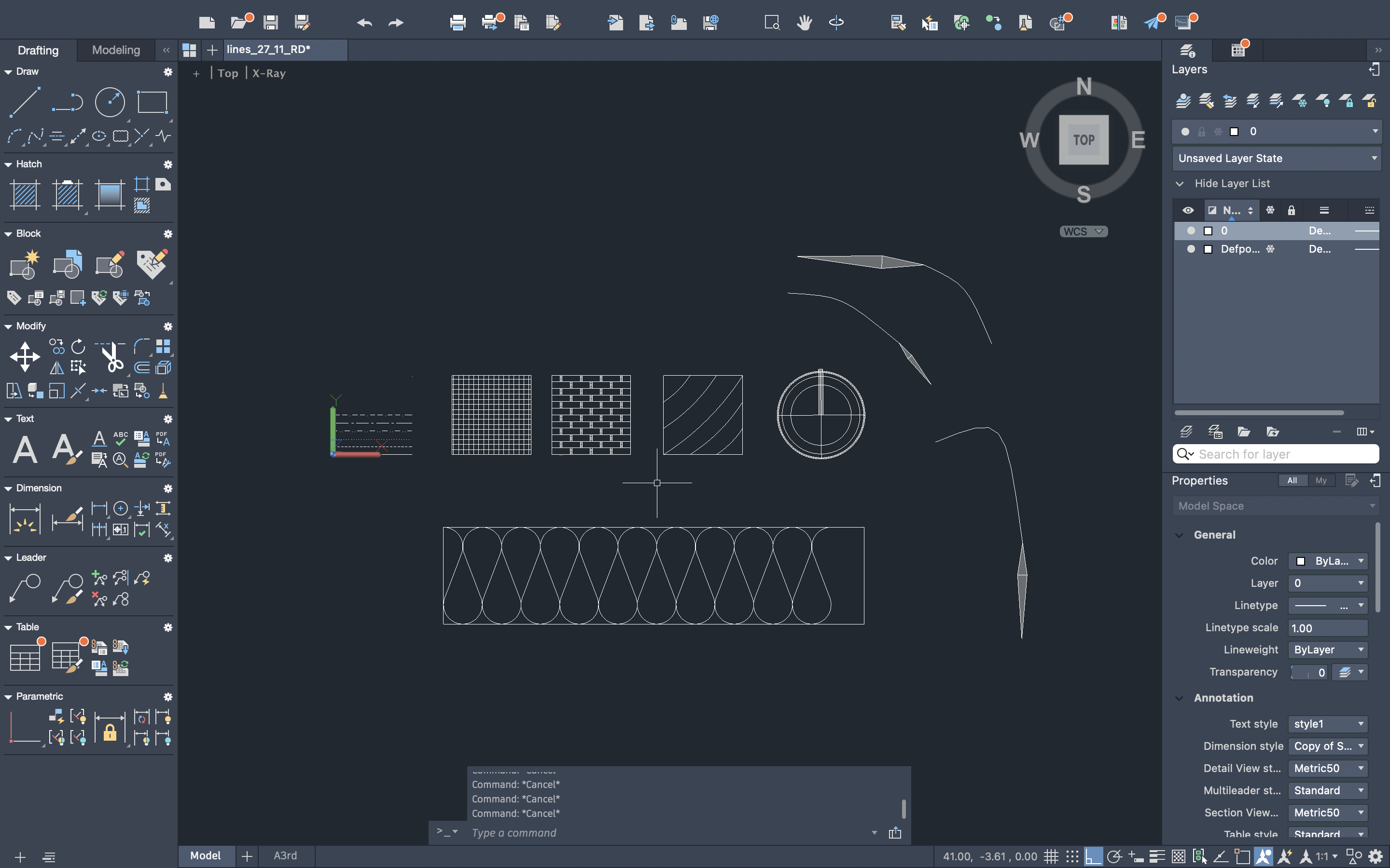 Experiência dos tipos de linha escolhidos, nas linhas existentes, com ajuda dos comandos: PROPERTIES, COPY e LTSSCALE