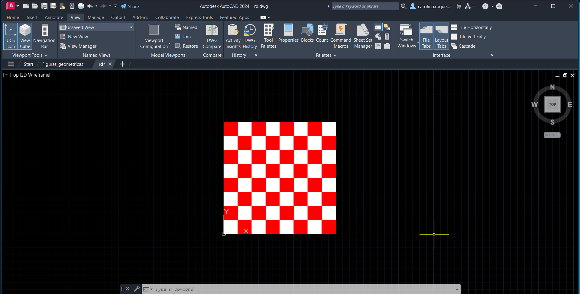 Exploração das possibilidades do AutoCAD através do exercício do tabuleiro , com ajuda de alguns comandos como a ''LINHA'', ''COPIAR'', ''APAGAR'', entre outros.