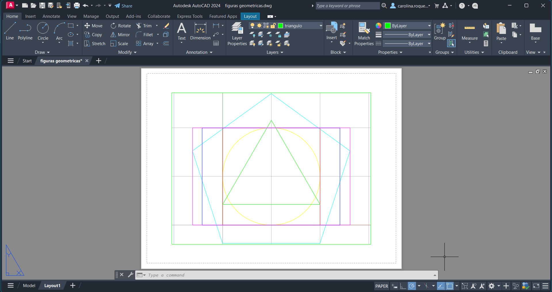 Exploração das possibilidades do AutoCAD através do exercício das formas geométricas, criando diversas peças como, por exemplo, o quadrado, o triângulo, o círculo, o retângulo e o pentágono. Este trabalho foi realizado com ajuda de alguns comandos como a ''LAYER'', ''LINHA'', ''PLINE'', ''POLIGONO'', entre outros.