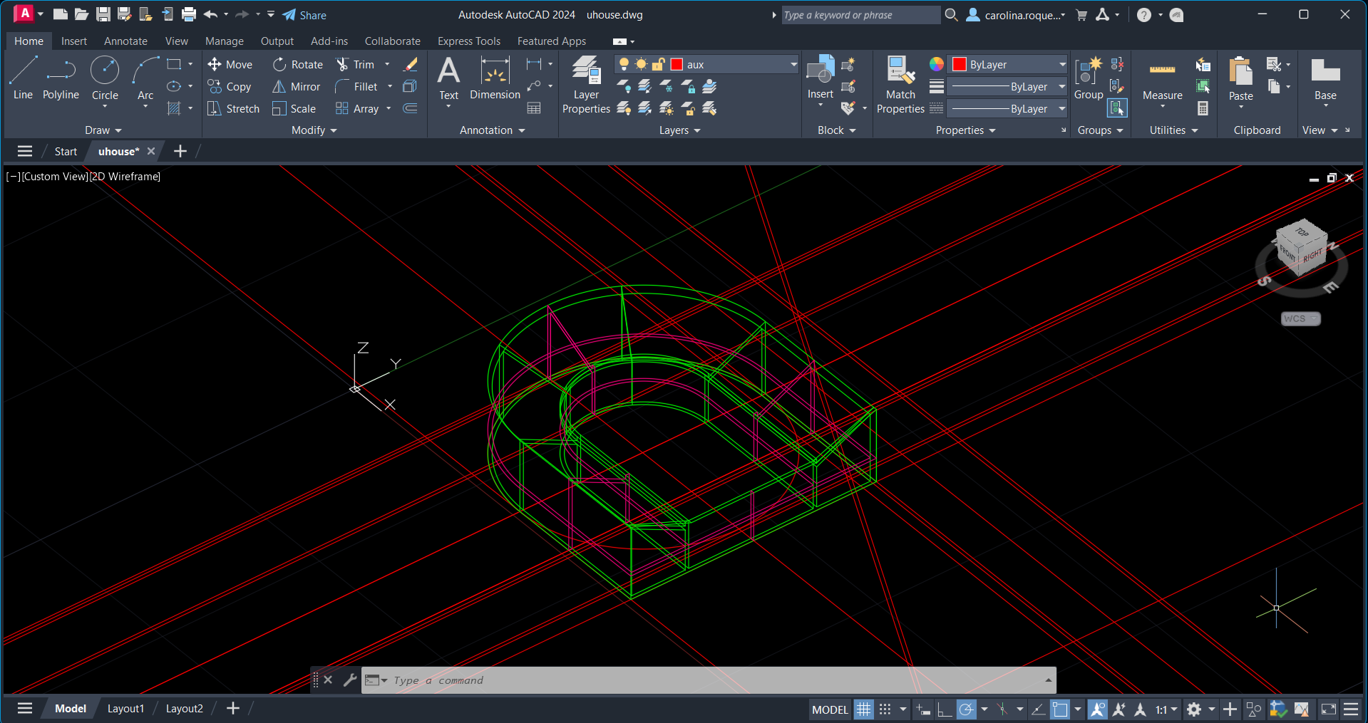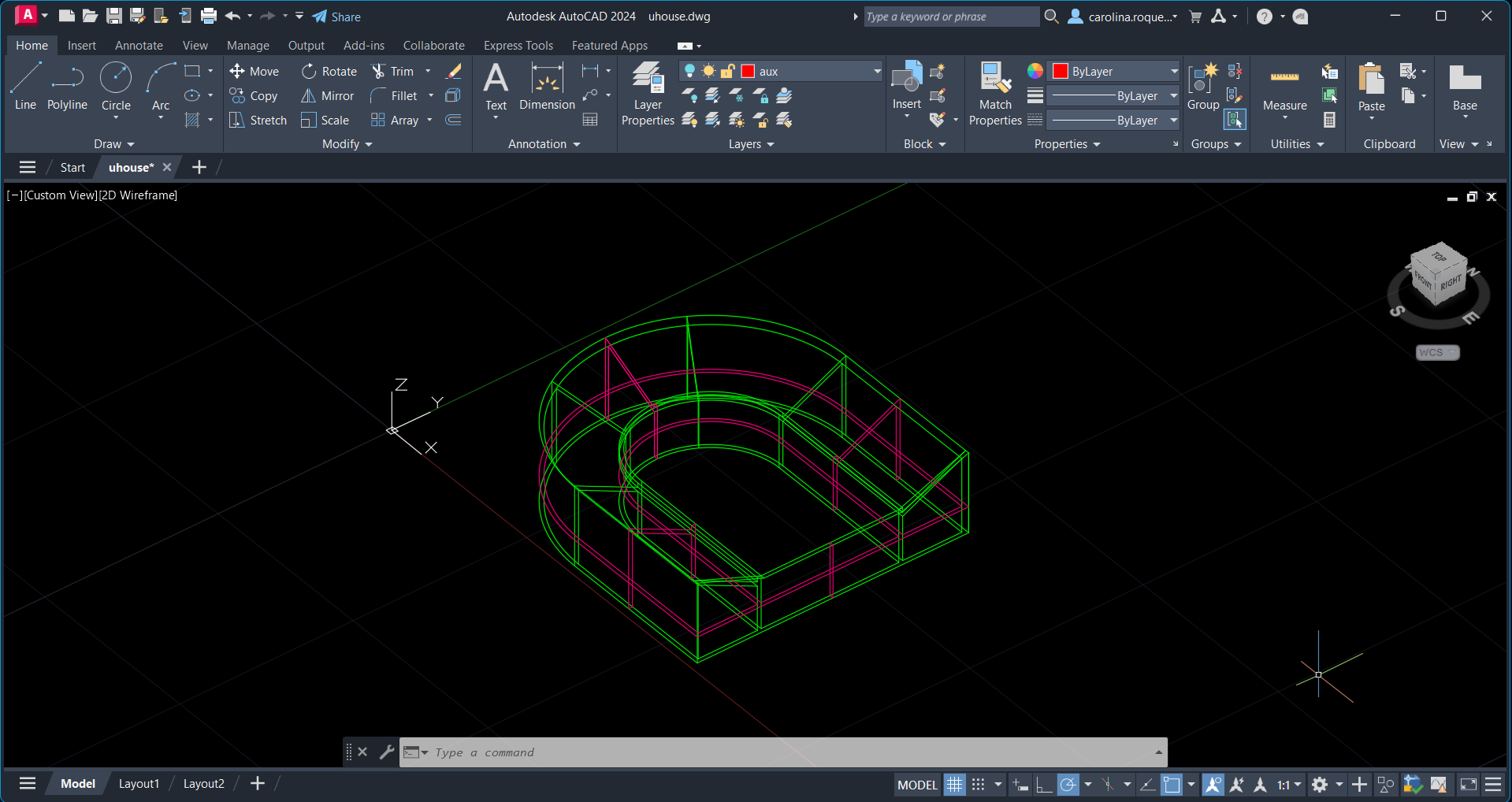 Início de um novo exercício para treinar os comandos e as formas no AutoCad. Exercício designado White U House . Edifício planeado por Toyo Ito contruída no ano 1976.