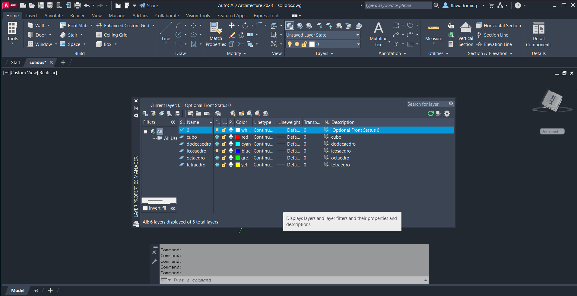 Criação de camadas diferentes para cada sólido geométrico.