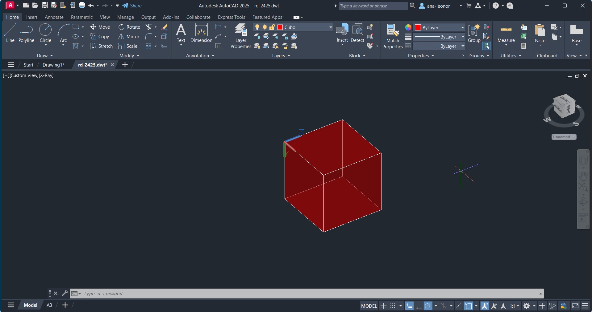 Inicio do trabalho sobre a Layer "Cubo". Introdução a novos Comandos como o REGION e o UCS.