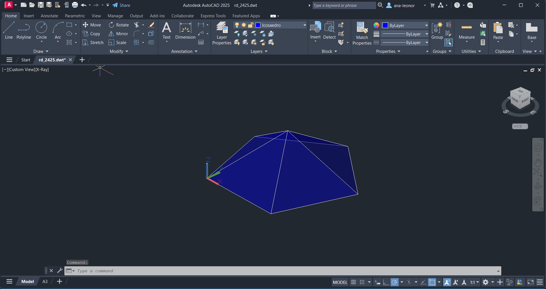 Inicio do novo sólido sobre a Layer "Isocaedro".
