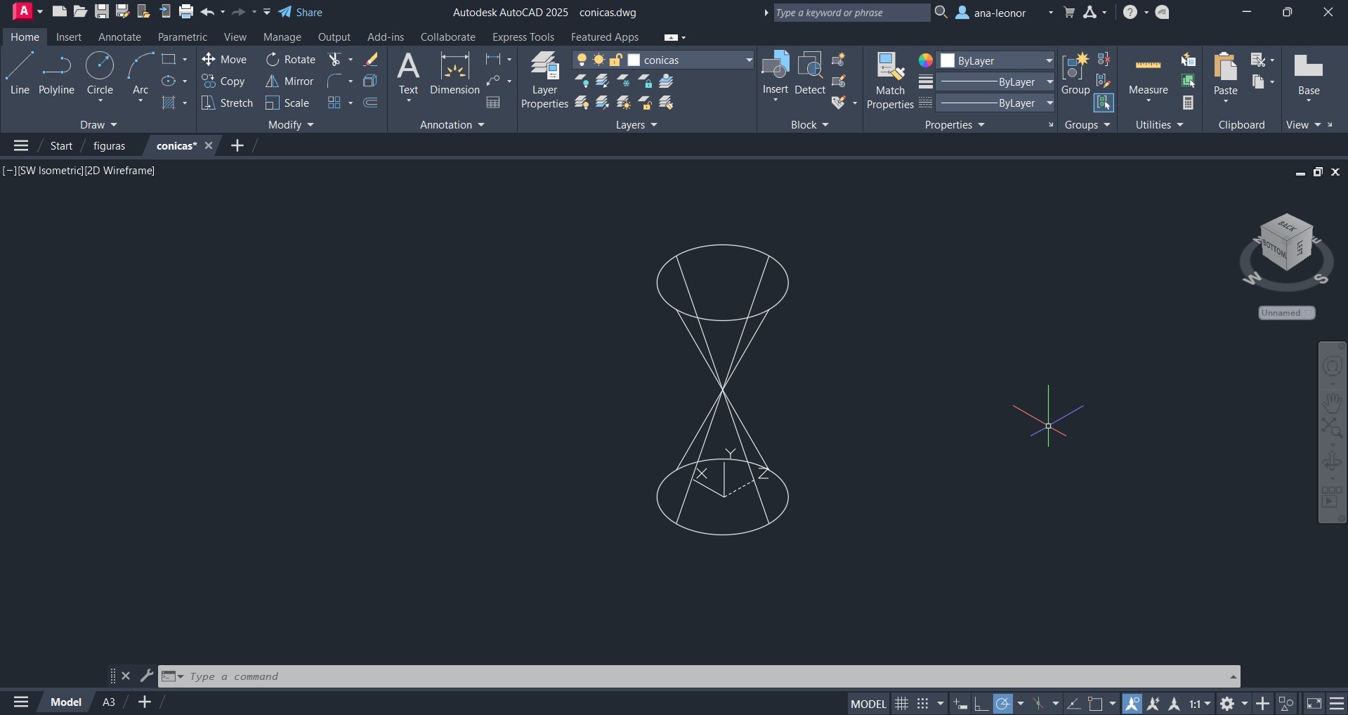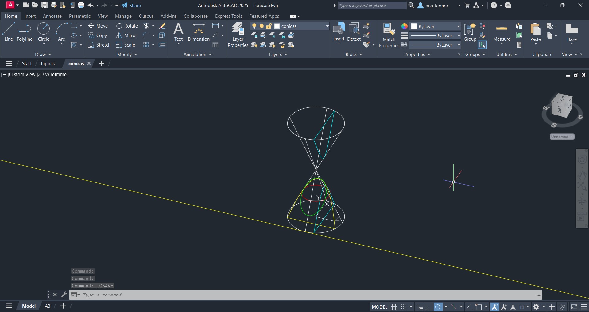 Introdução a novos Comandos como o CONE (ferramenta usada para criar o cone) e SECTION (vista em corte de um objeto tridiomensional).