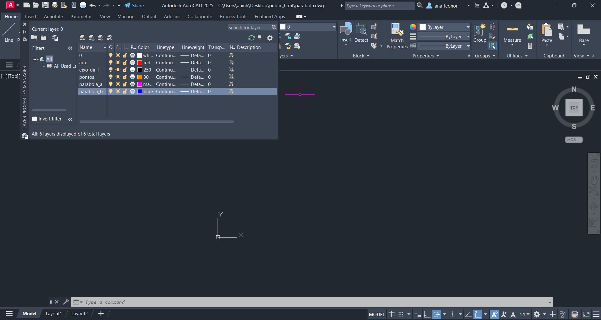 Continuação do exercício, trabalhando agora sobre a layer "Parábola".