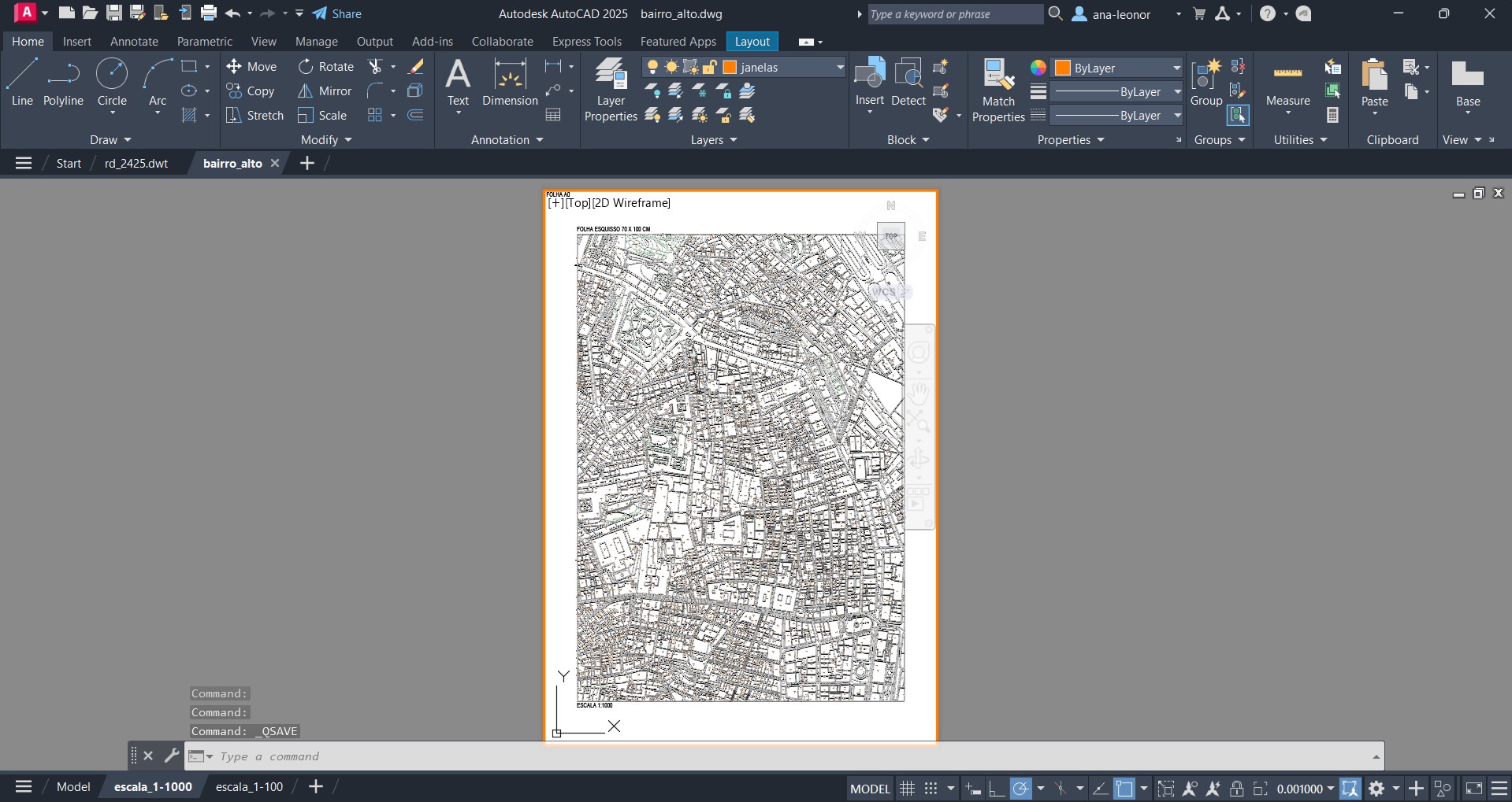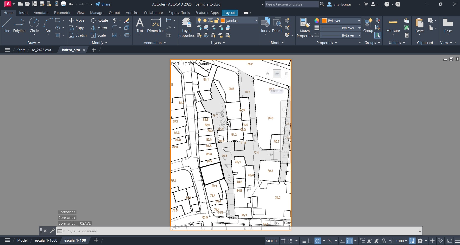 Alteração da folha de layout para o tamanho A0,através do comando PAGESETUP, de modo a incorporar corretamente a planta estudada.