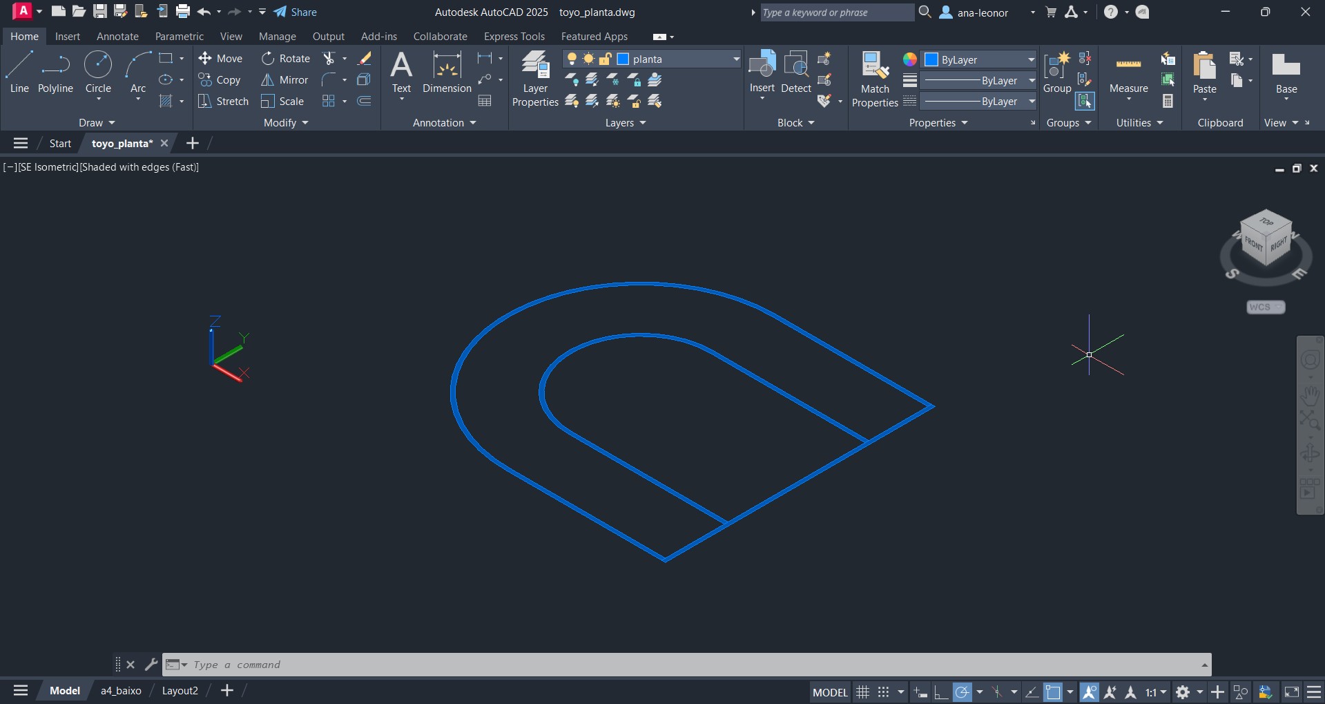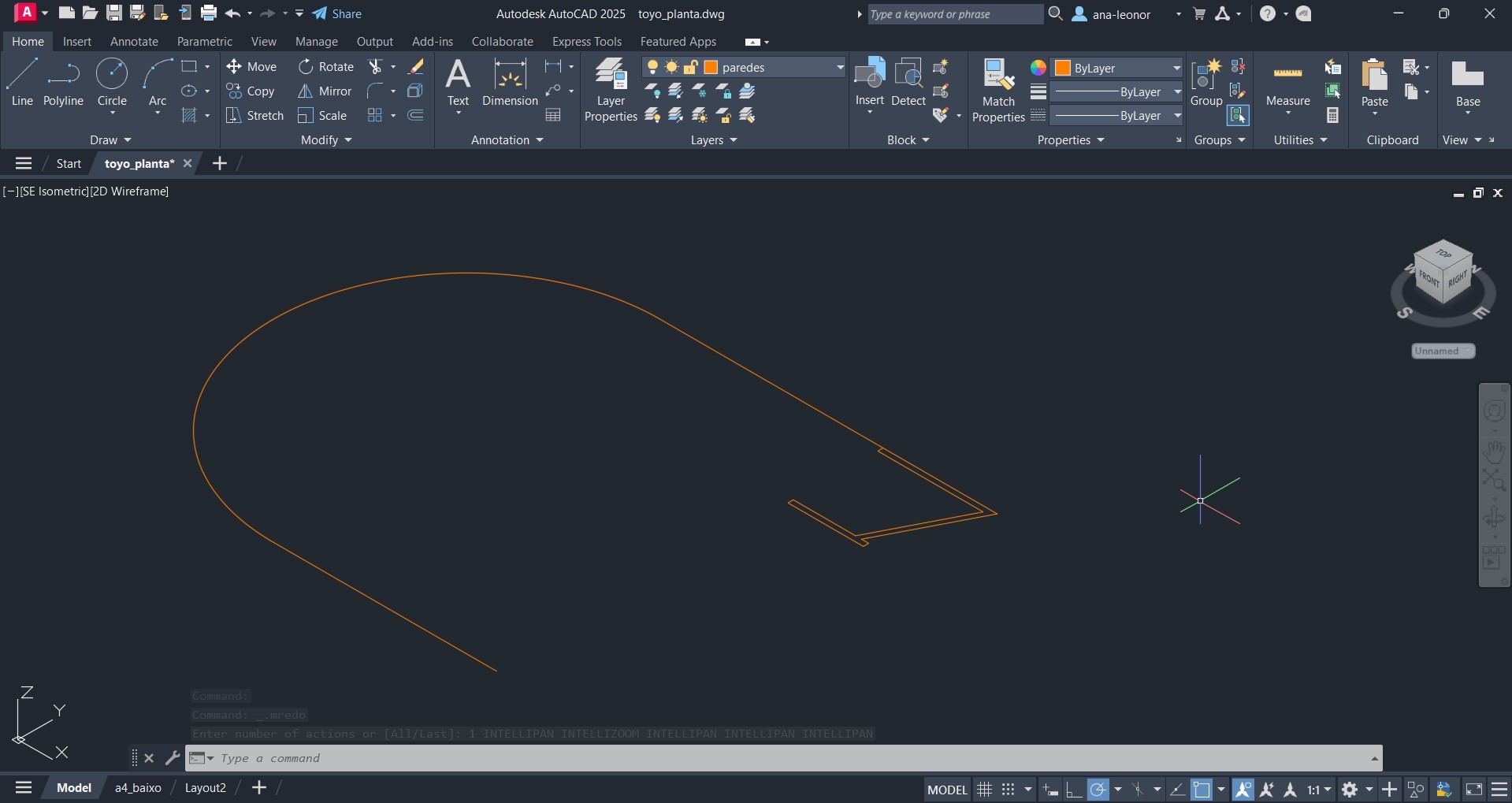 Continuação do estudo da planta a Toyo Ito House, escalando a sua forma, através do comando SCALE,de modo a que as medidas correspodam à medida real.