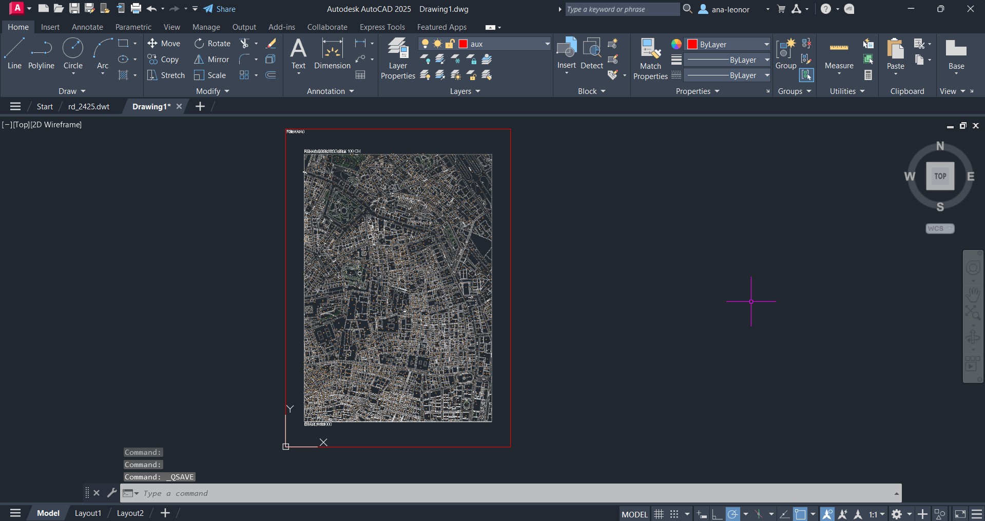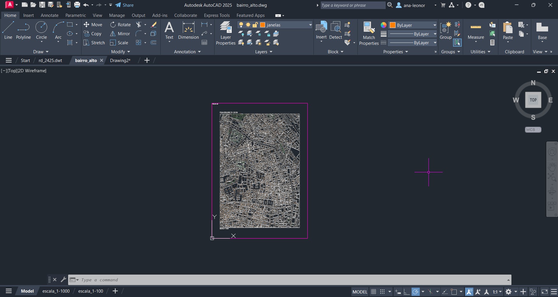 Introdução da planta numa nova página do Autocad,através da ferramenta IMAGEATTACH (ferramenta usada para inserir imagens externas).