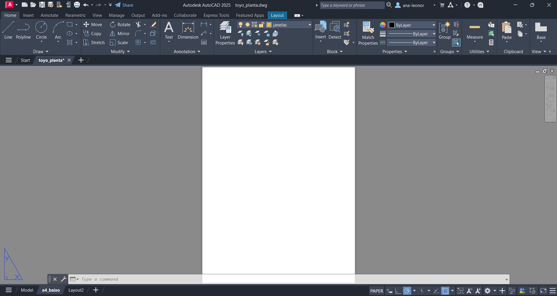 Alteração da folha de layout para o tamanho A4,através do comando PAGESETUP, de modo a incorporar corretamente a planta estudada.