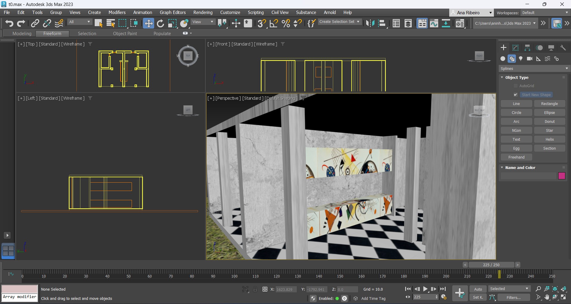 Introdução da projeão do quadro do kandinksy na sala, como posto de referência para animação do teste final de semestre.