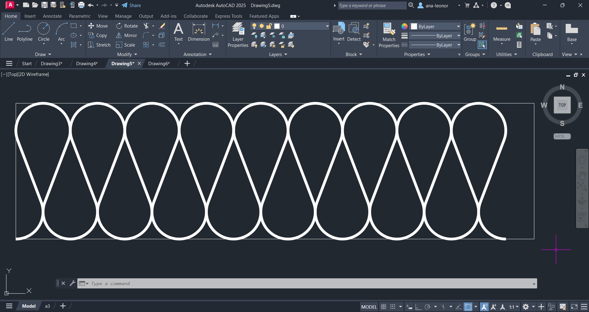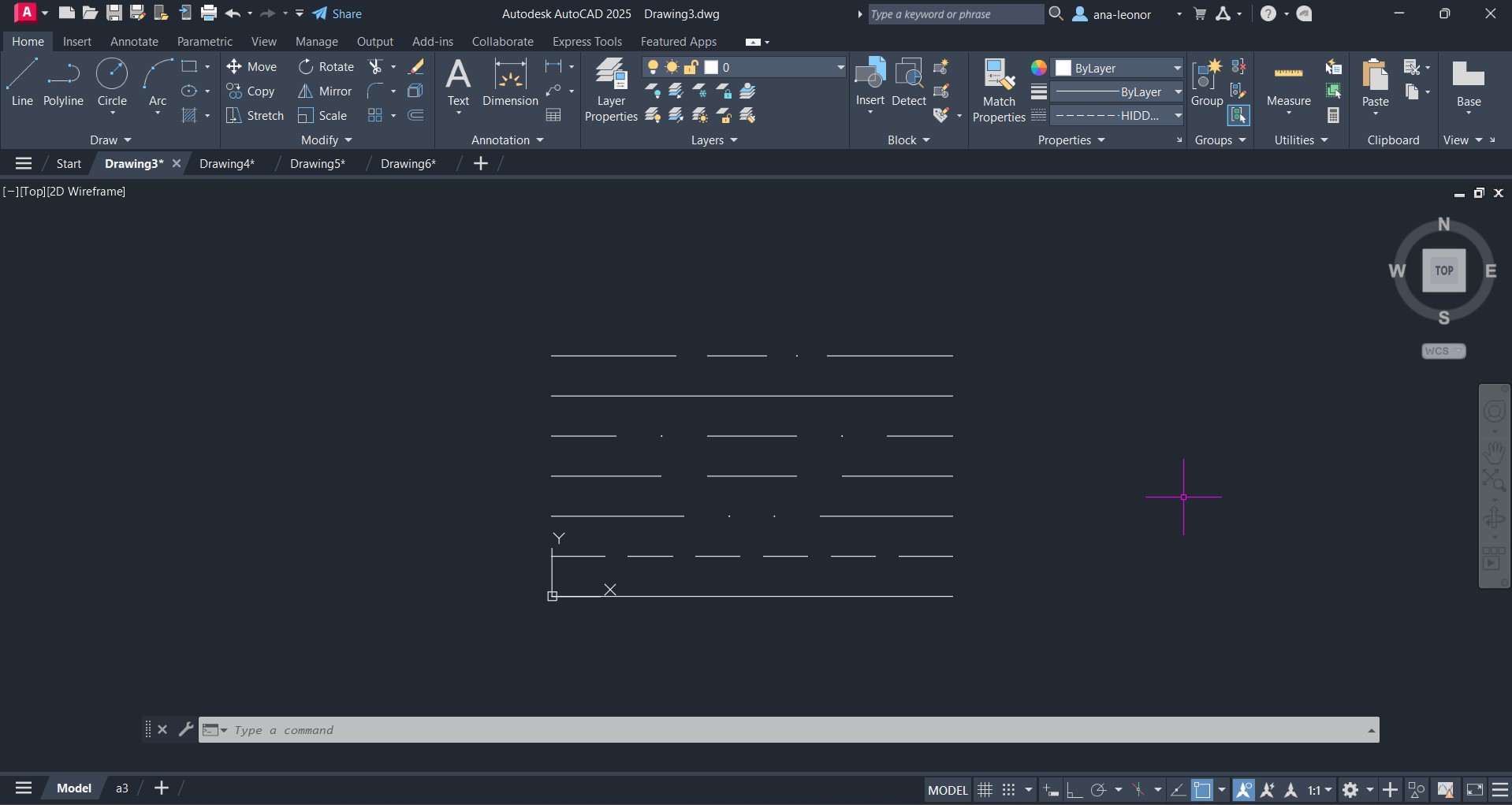 Representação de diferentes "tipologias" de linhas, através do comando LINETYPE (no qual fez se a seleção das linetypes