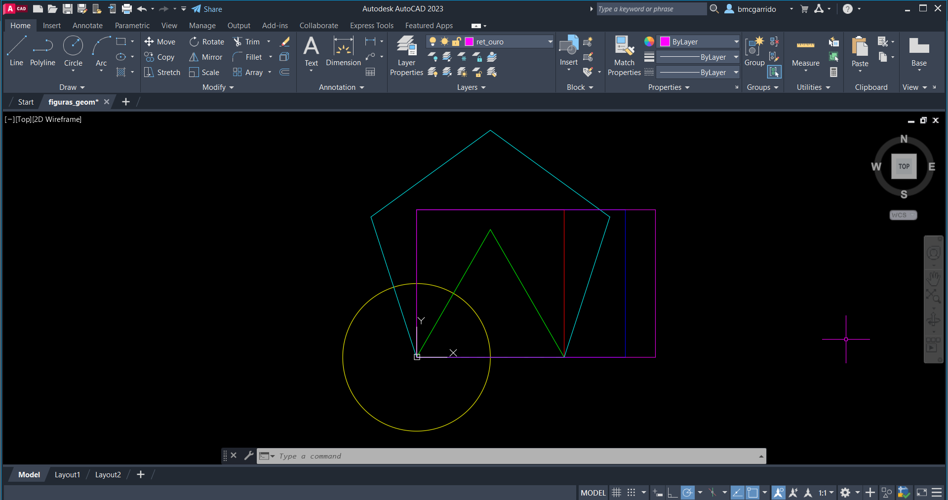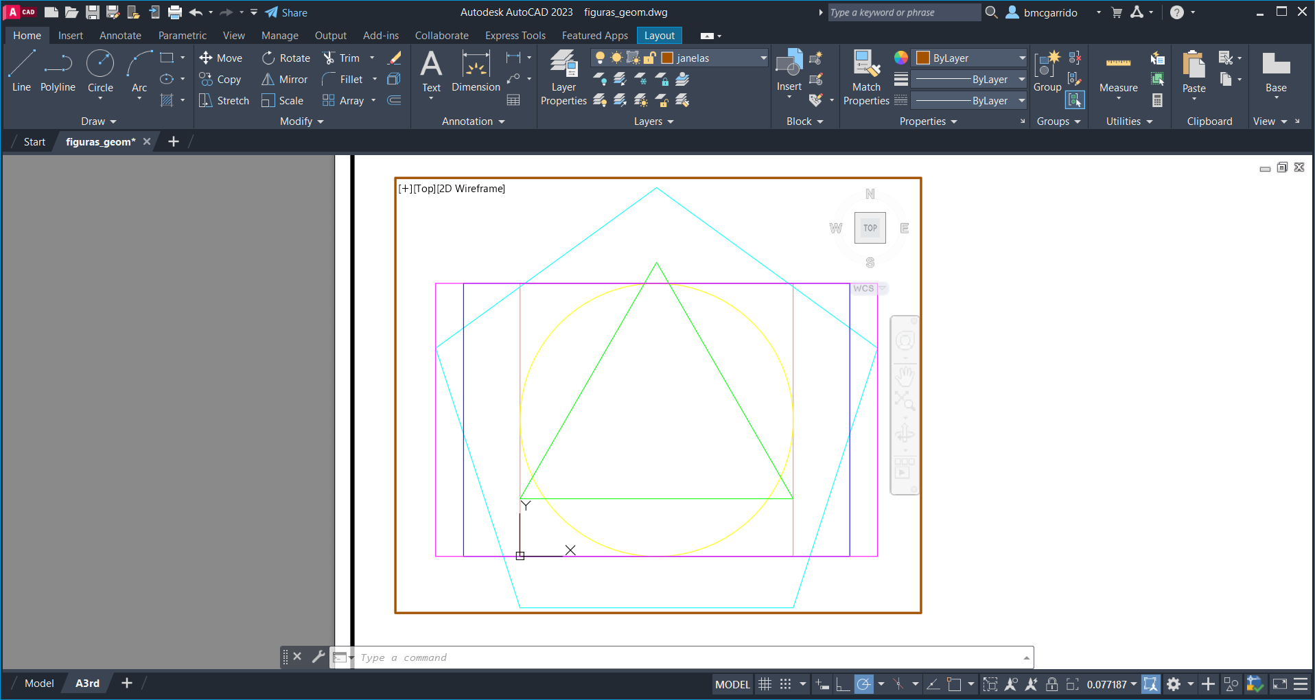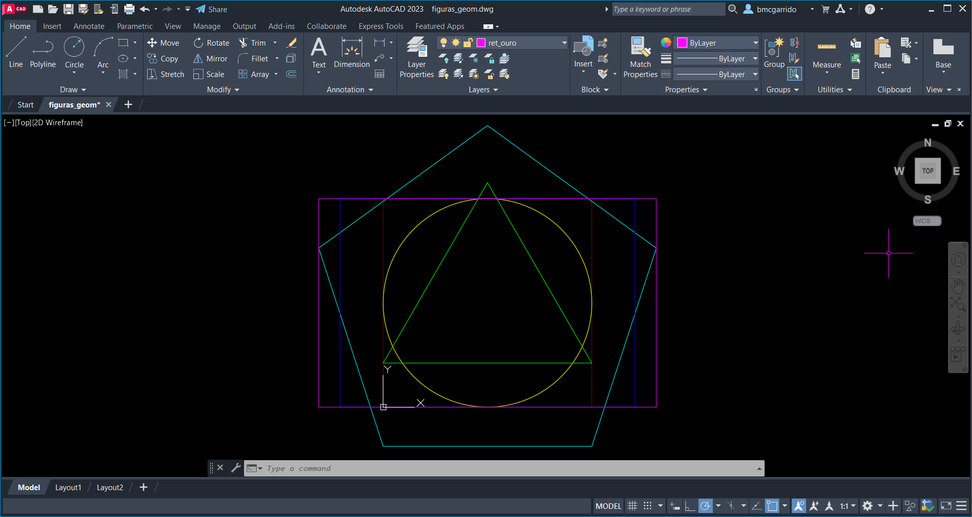 Continuação do exercício dos polígonos, criando cada um em diferentes camadas e por fim colocando todos com o mesmo centro.