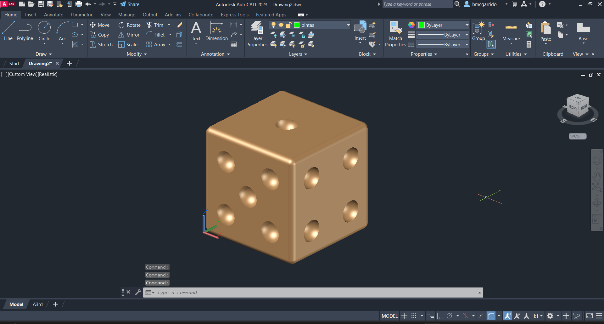 Ainda nesta semana constuímos um dado, retirando esferas e fazendo as arestas curvas.