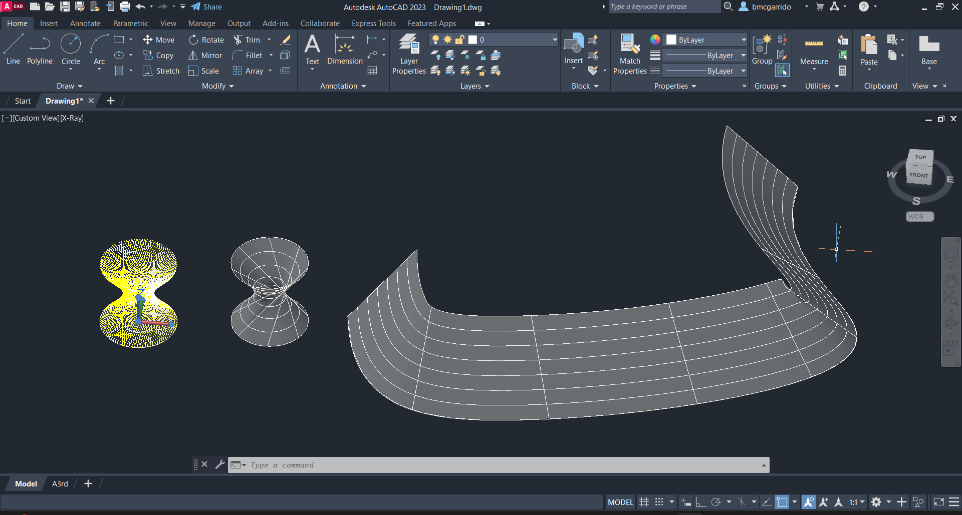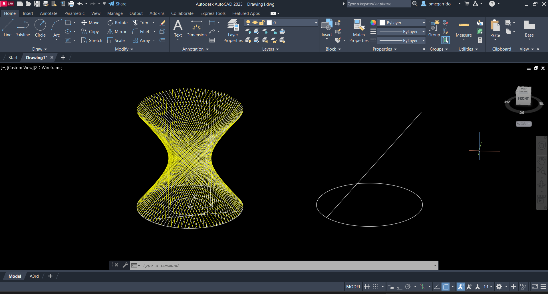 Criamos uma superfície hiperbólica com dois métodos diferentes e ainda uma superfície contínua através da geratriz da outra superfície.
