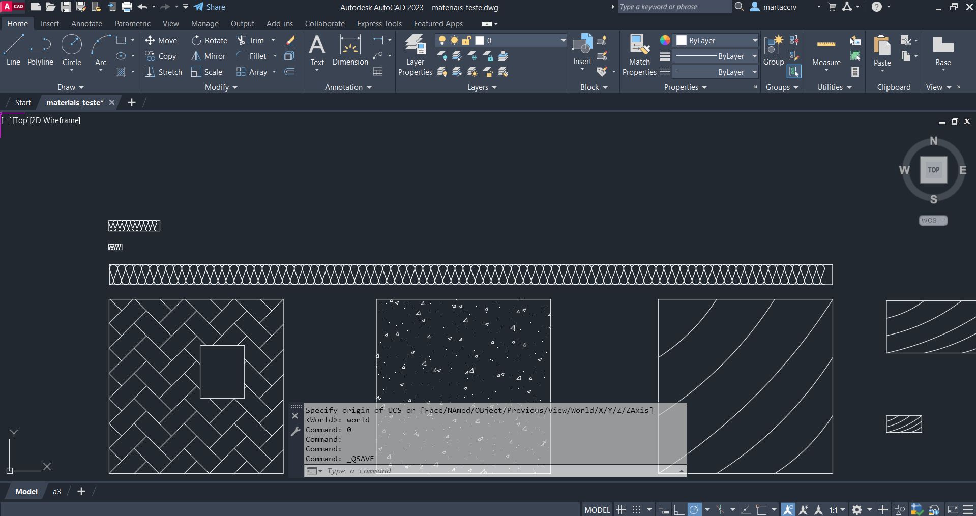 De seguida criamos ainda outro documento para aplicar diversos materiais e com o comando "appload" transferimos para o programa alguns comandos novos assim como vimos