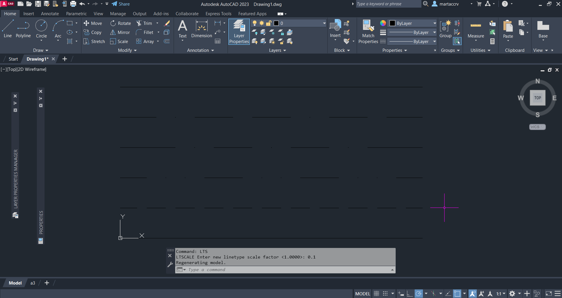 Na primeira aula da semana voltamos a trabalhar com o "AutoCad" onde iniciamos com um ficheiro "linhas" para introduzir diversos tipos de linhas possiveis com o comando