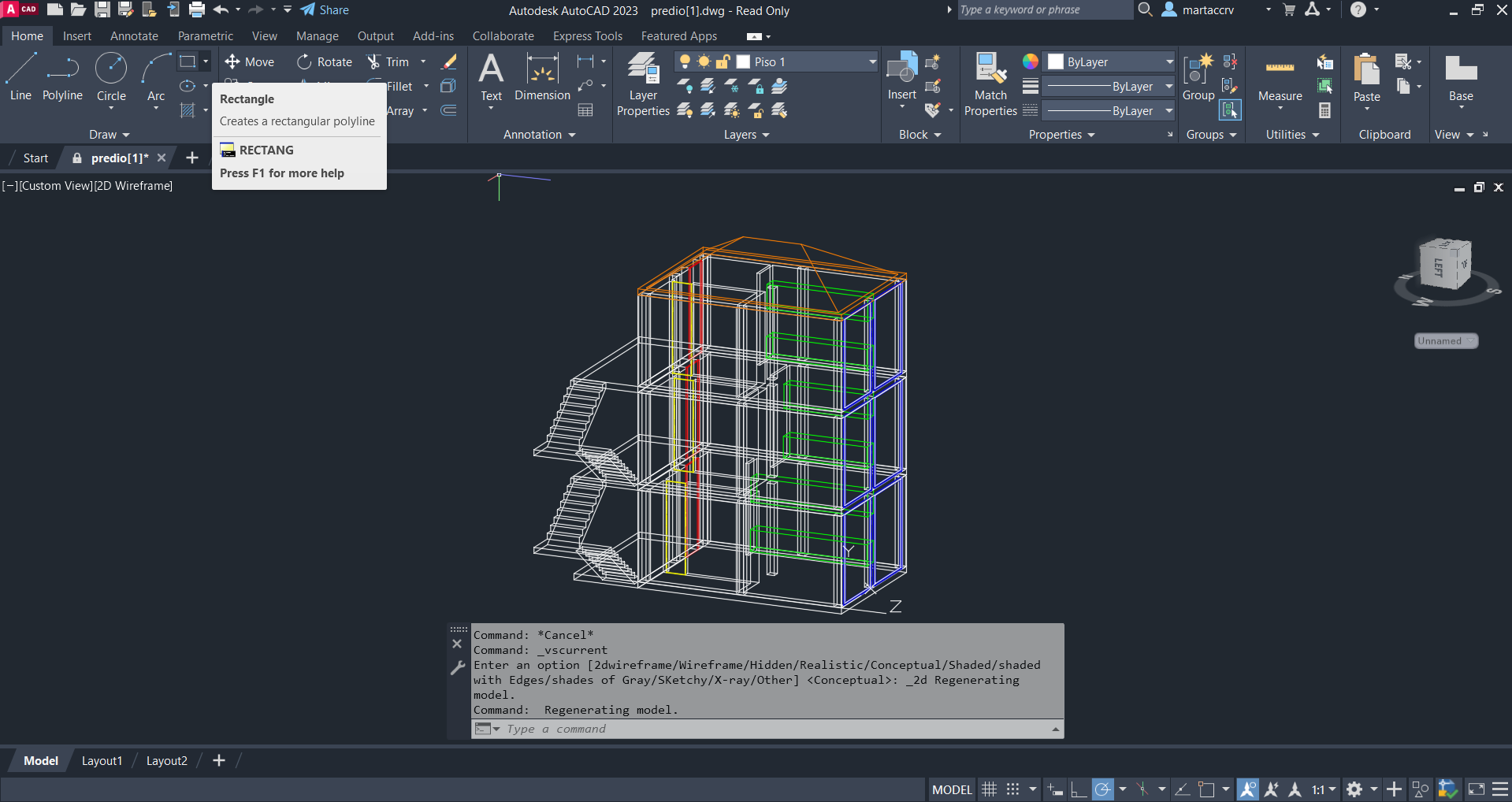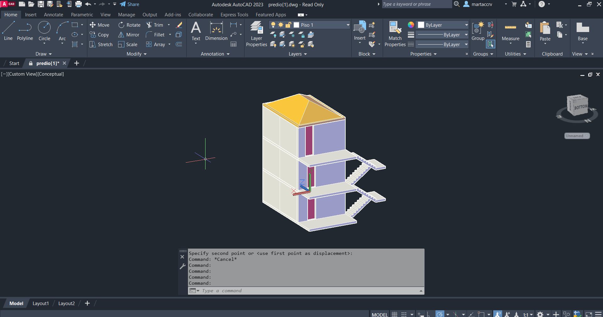 Na segunda aula da semana voltamos a fazer "appload" de 2 ficheiros .Lsp de "escadas" e "setas" criando a partir de um ficheiro t0 um predio adicionando os comandos