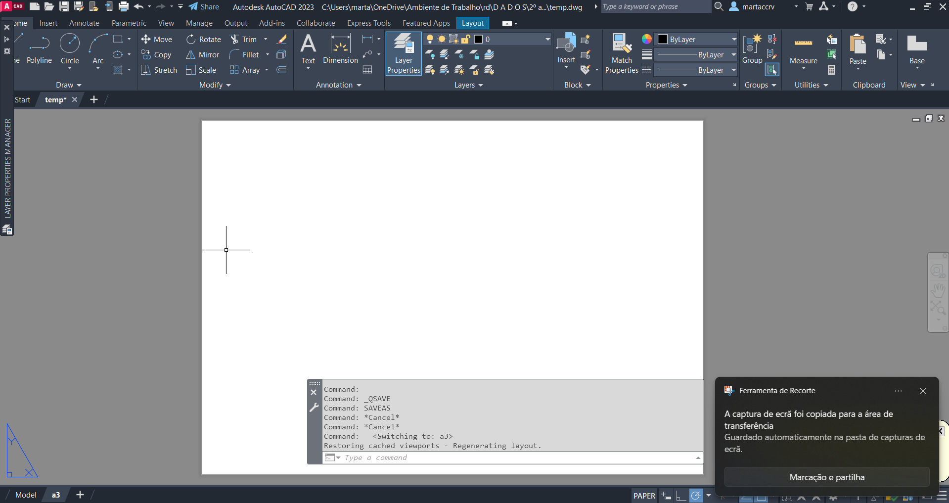 Por fim, salvamos o ficheiro da folha A3 como uma nova template de modo a que seja sempre a base de trabalho, eliminando assim do AutoCAD o trabalho, mantendo apenas a template