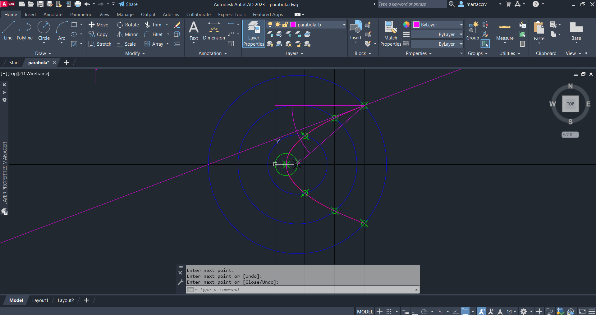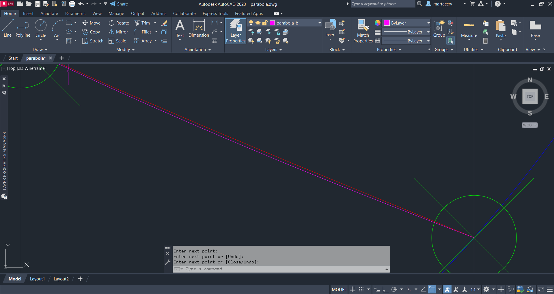 Por fim, encerramos esse exercicio ao criar a partir de uma das parwabolas criadas uma parabolica em 3D. No final da aula ainda criamos um novo docujmento AutoCad com o nome