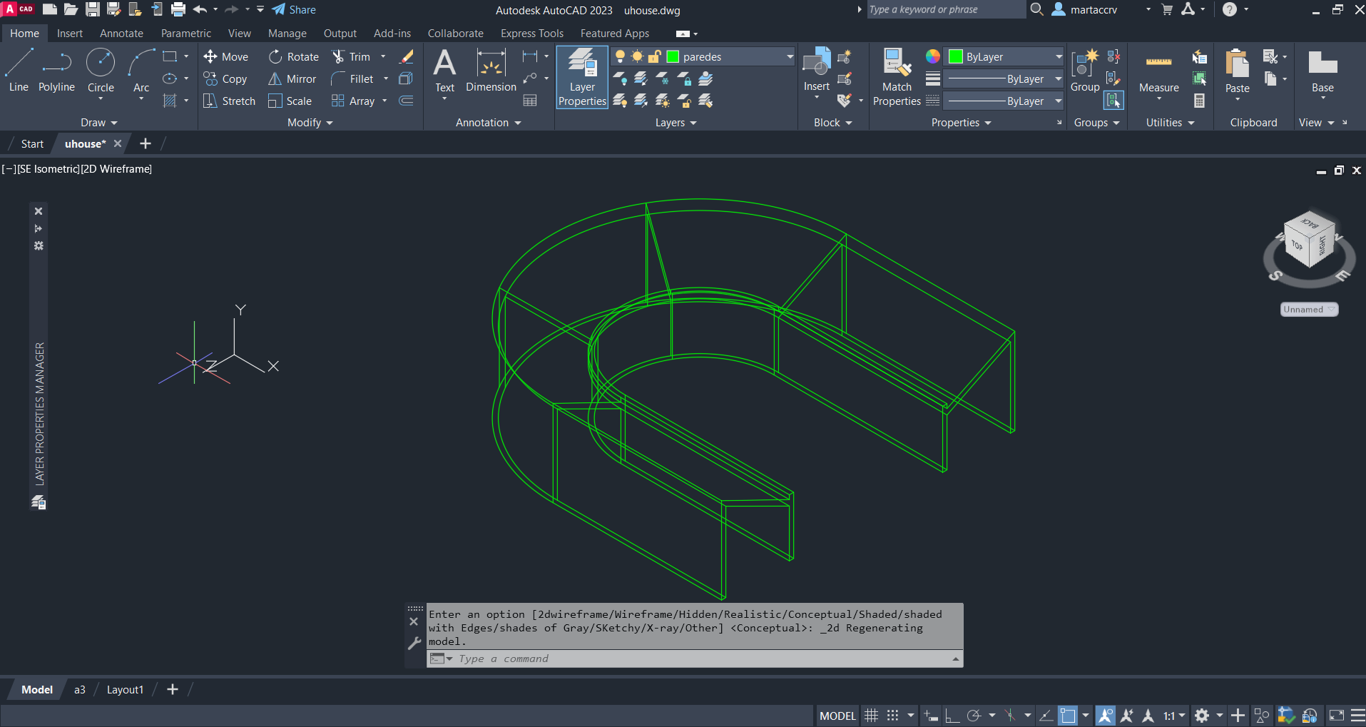 Na segunda aula da semana, fizemos assim como concluimos o documento "uhouse" onde criamos varias layers, como por exemplo, de linhas guias de modo a podermos passar