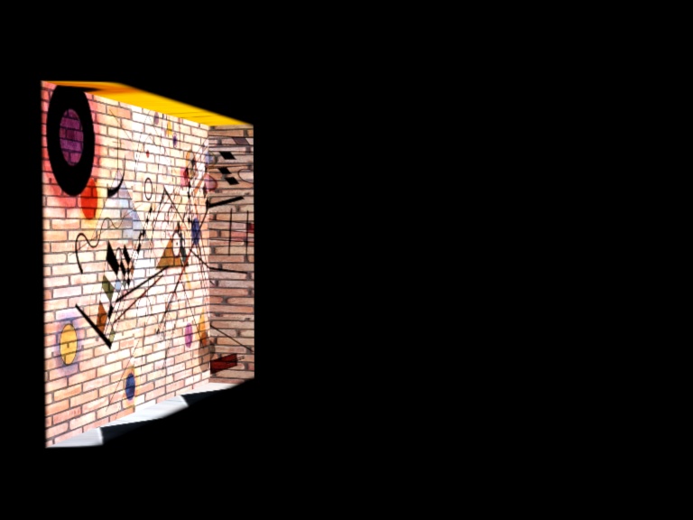 Para este efeito, modificou-se a posição da camara do observador e introduziu-se uma nova luz de projeção, portanto a pintura de Kandinsky.
